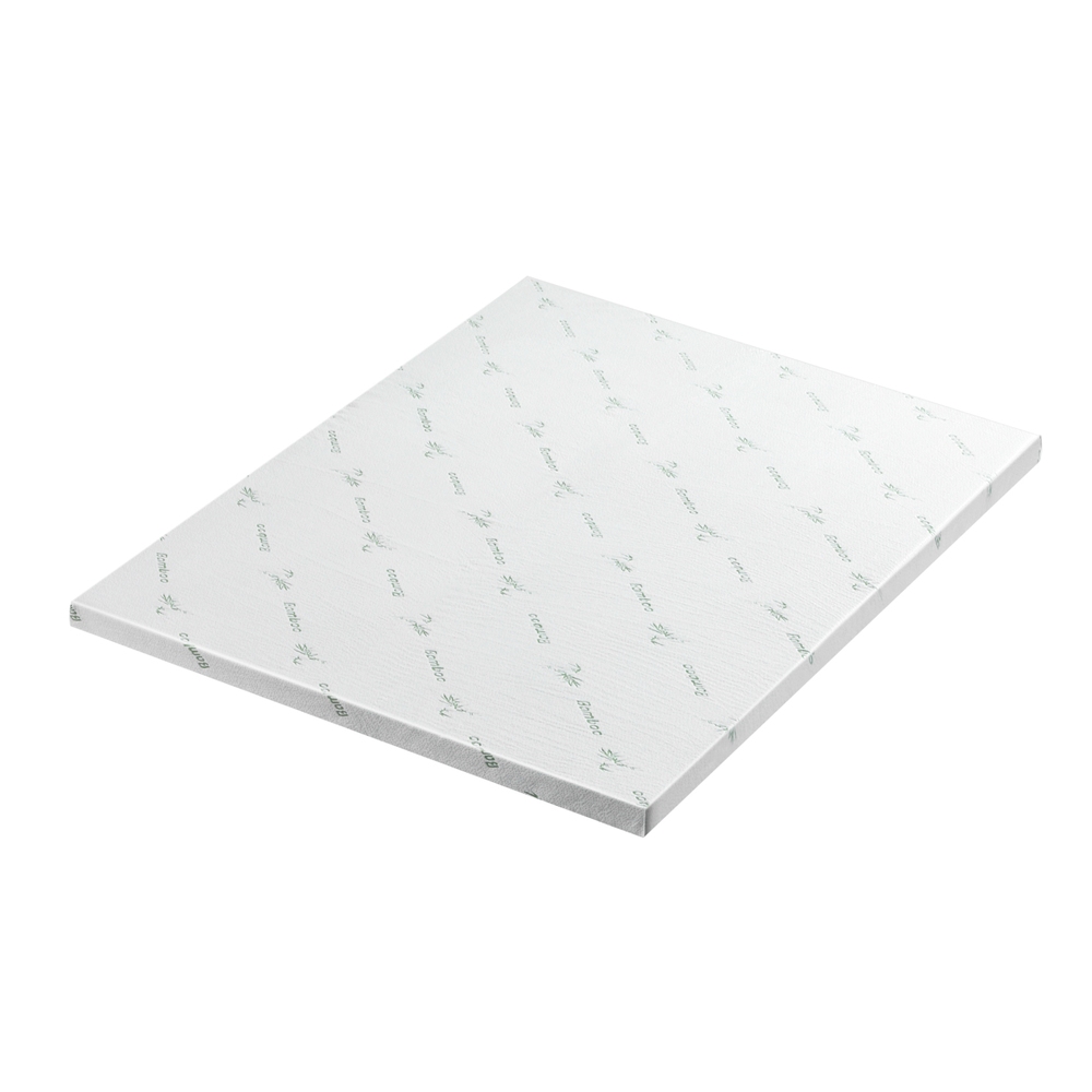 This memory foam mattress topper offers a luxurious and supportive sleeping surface designed to enhance comfort. Made from high-quality visco-elastic memory foam with a thickness of 5cm, it conforms to your body shape. Ventilation holes improve airflow for a cooler sleep environment. The bamboo fabric cover is soft, durable, and removable for easy cleaning, providing a hygienic sleeping experience.