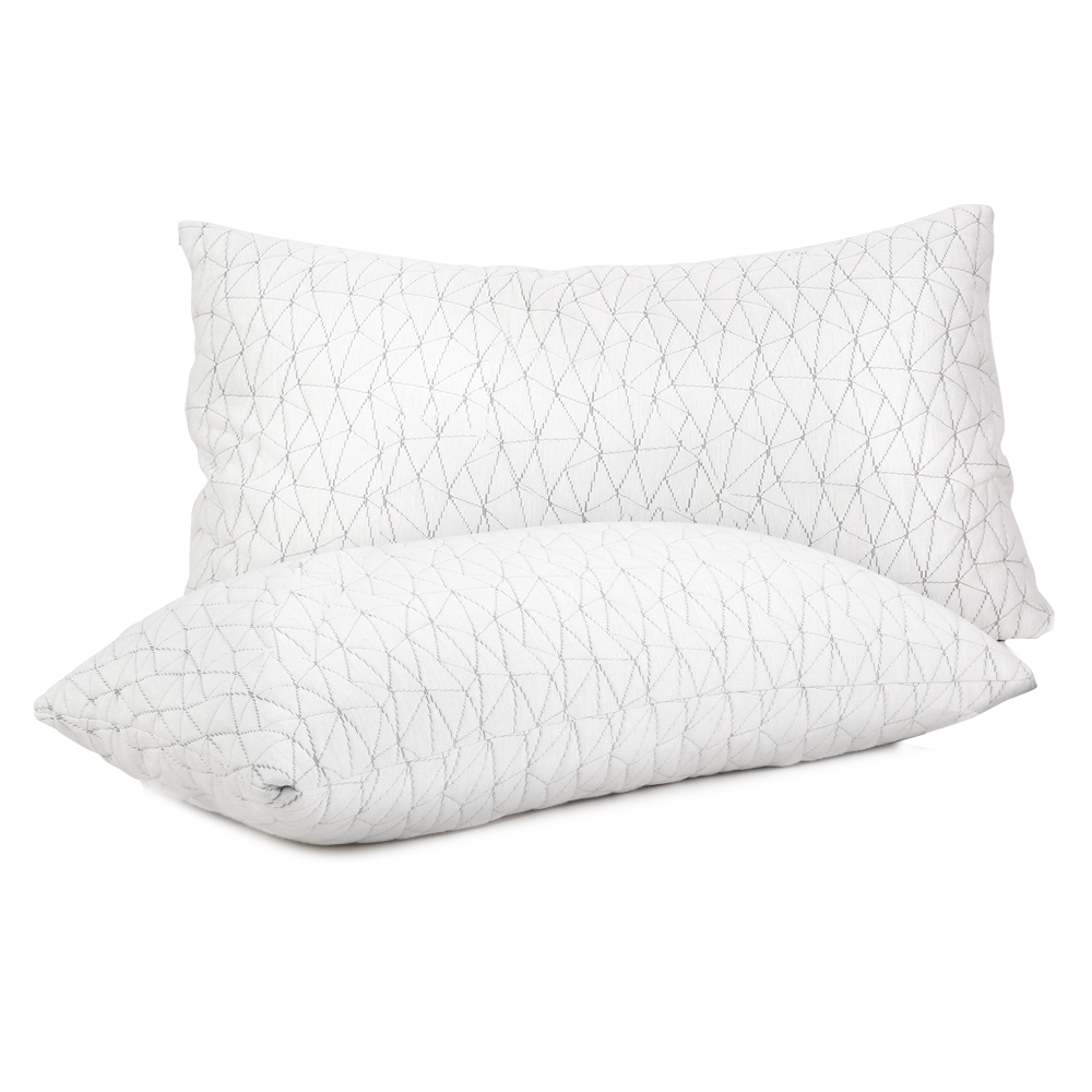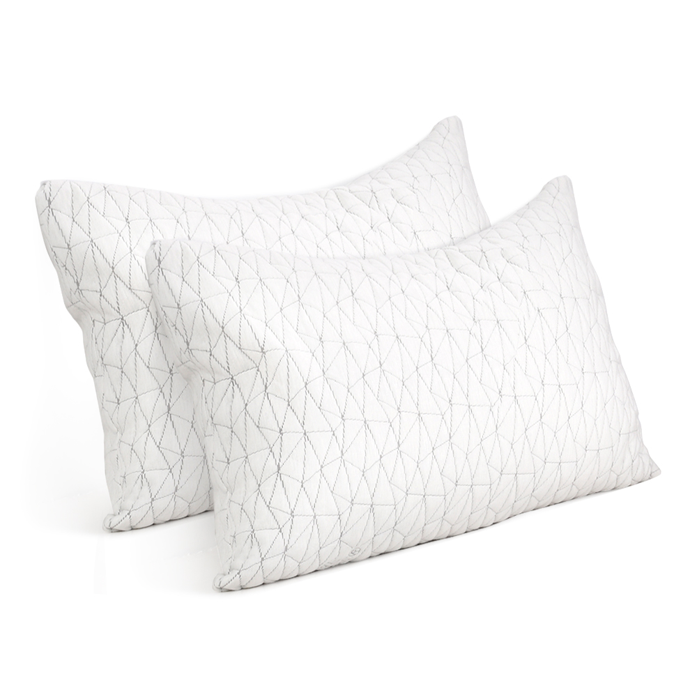 This set includes two king-size memory foam pillows designed to enhance your sleep comfort. Each pillow features a high-density, gel-infused shredded memory foam filling that provides excellent support for your neck and shoulders. The breathable rayon fabric cover is eco-friendly, resistant to dust mites and mold, and suitable for allergy sufferers, ensuring a comfortable sleeping surface night after night.