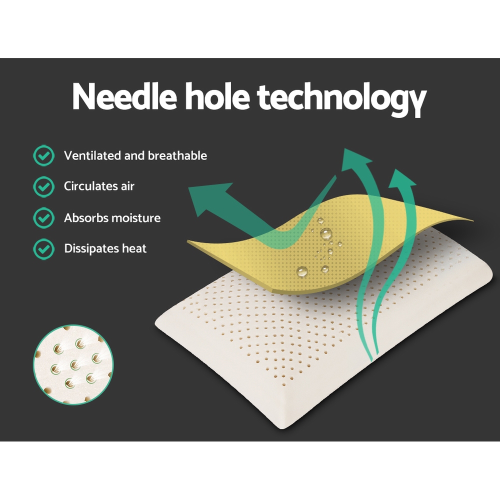 This set includes two natural latex pillows designed to provide optimal support and comfort. Crafted from 100% natural latex, these pillows offer a soft yet resilient feel that conforms to your head and neck, ensuring a restful sleep experience. Their breathable construction promotes air circulation, moisture absorption, and heat dissipation, making them suitable for a comfortable and stress-free rest. The pillows are durable, eco-friendly, and resistant to dust mites, bacteria, and mold, making them a hygienic choice for everyday use.