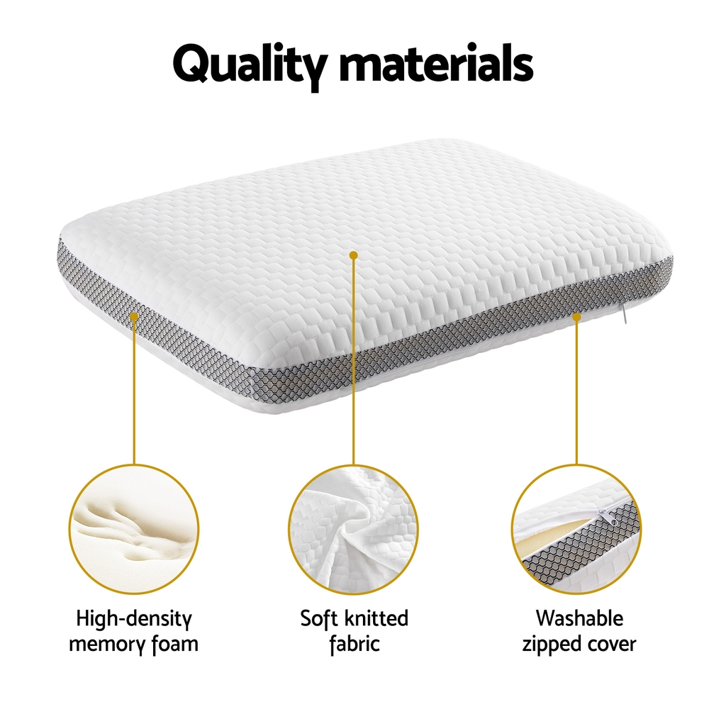 This memory foam pillow is designed to provide optimal support and comfort for a restful sleep experience. It features a breathable mesh gusset panel and a removable, washable cover, ensuring a cool and hygienic environment. The pillow conforms to the shape of your head and neck, helping to reduce stress and strain, and is suitable for all sleep positions. Its shape remains consistent throughout the night, offering reliable support without shifting or clumping.