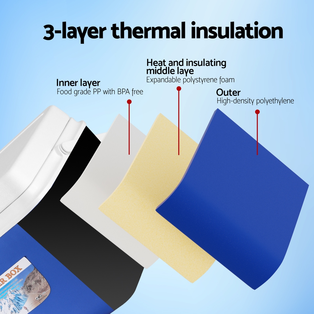 - Materials: PE (outer), EPS (middle), PP (inner)