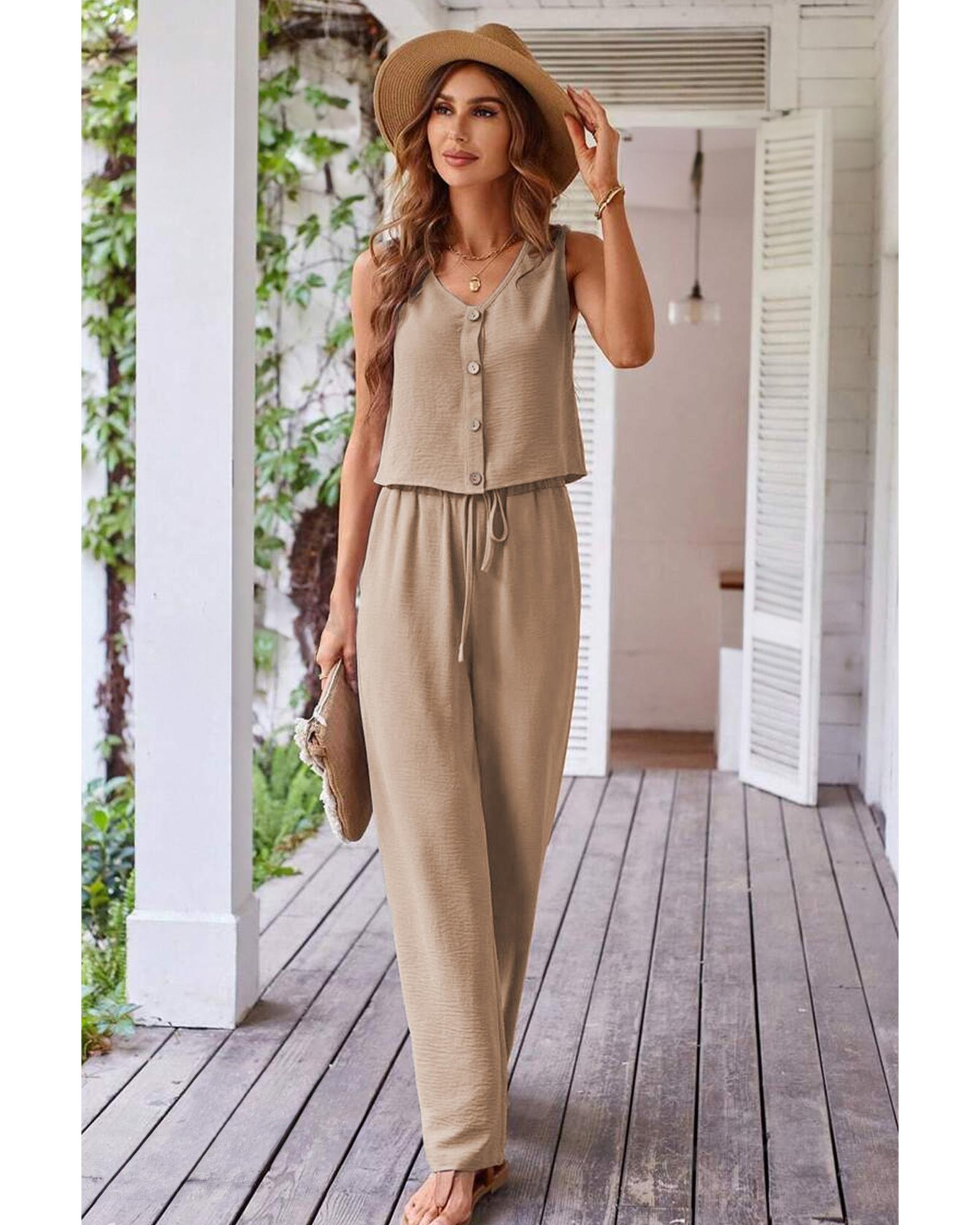 Goat Buttoned Vest Drawstring Wide Leg Pants 2pcs Set – L