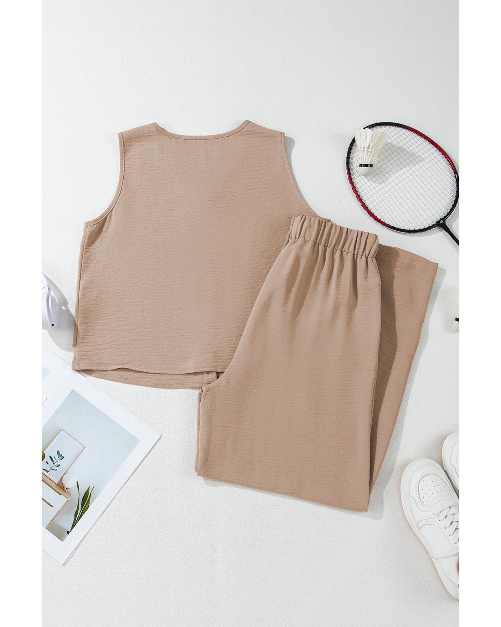 This 2-piece set includes a stylish buttoned vest and wide-leg casual pants, offering a trendy and versatile look suitable for various occasions. The crop vest features a boxy fit, providing a modern silhouette, while the relaxed pants are designed to be flattering and comfortable for everyday wear.