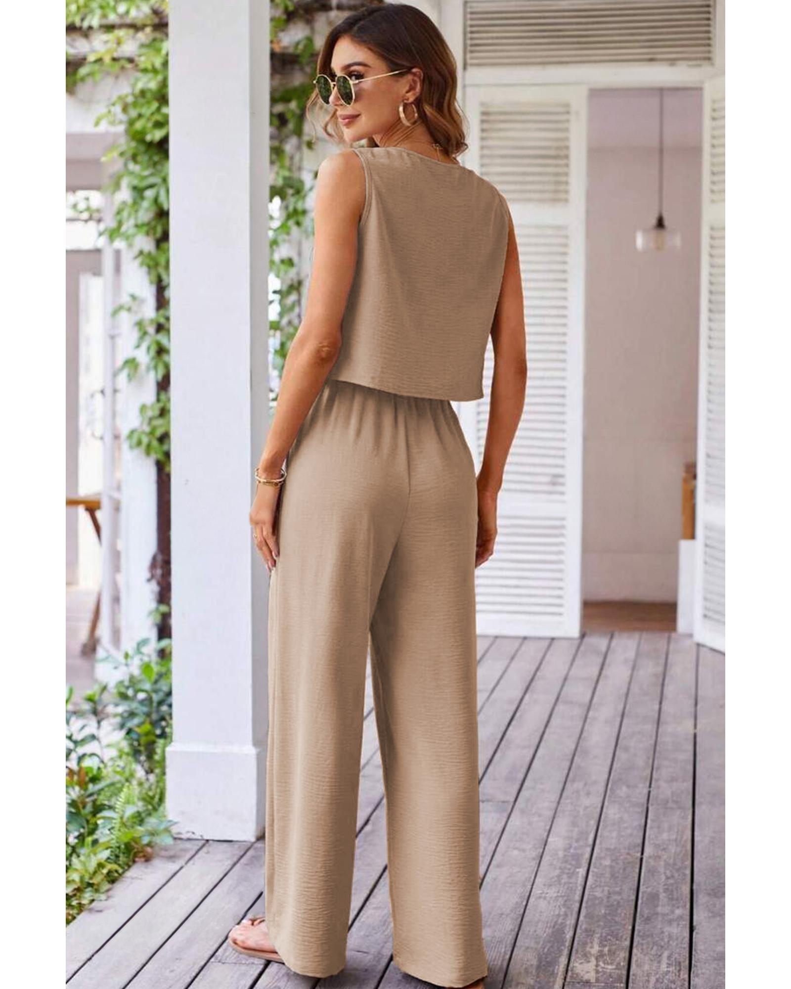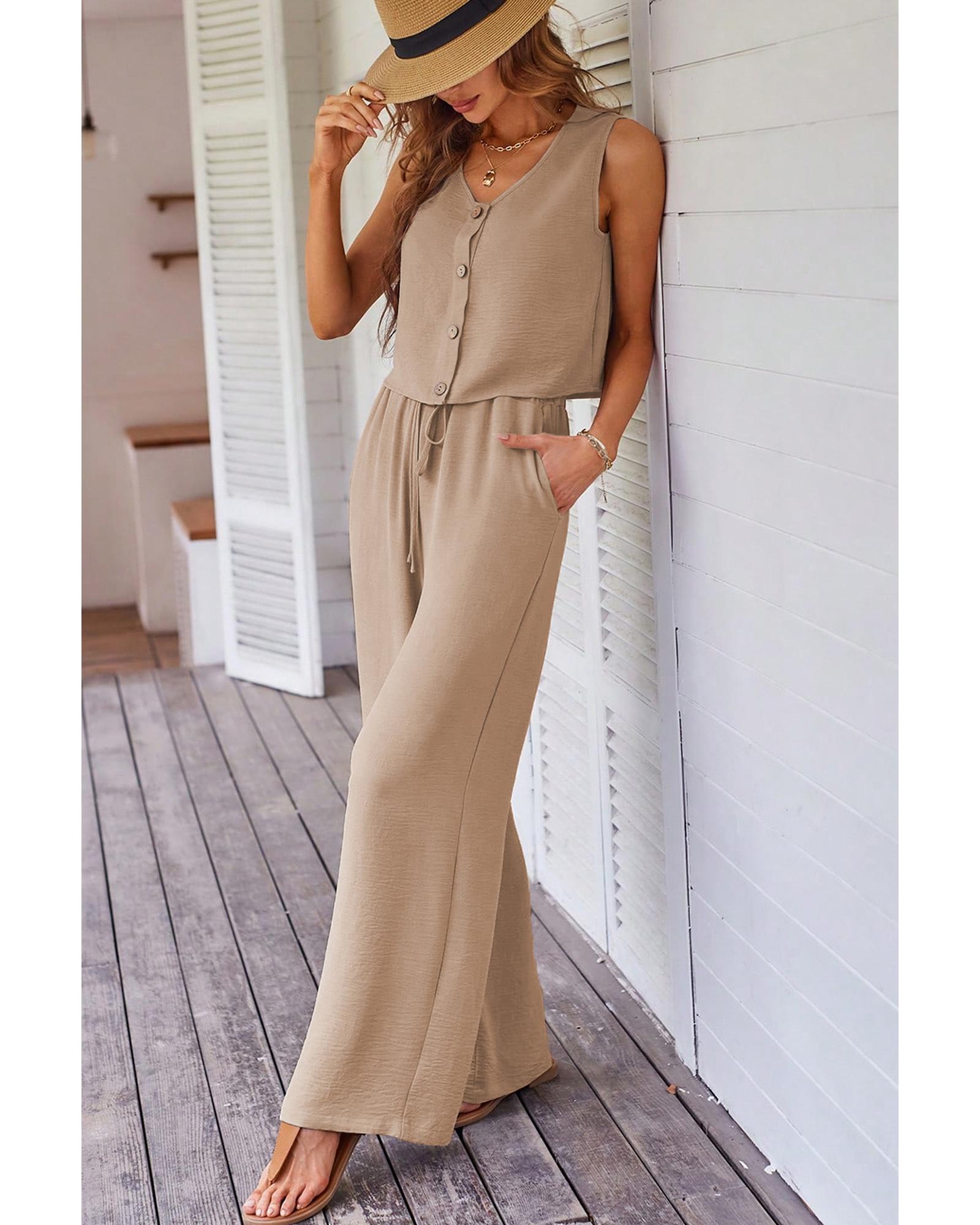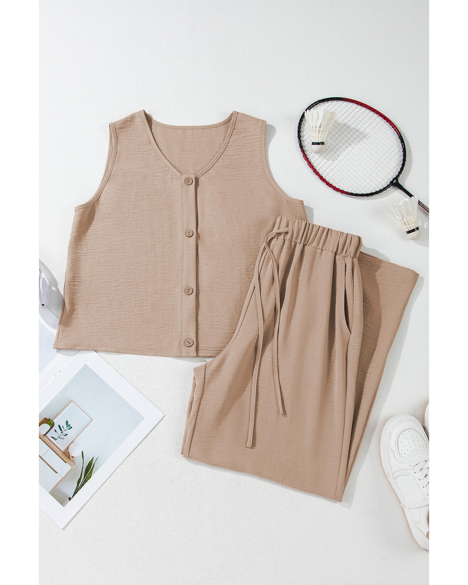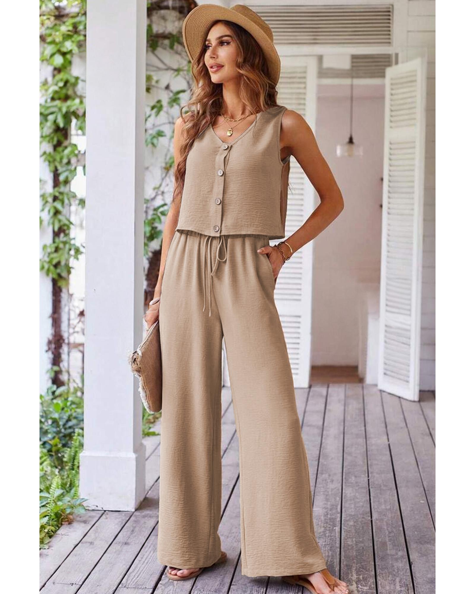 - Stylish buttoned vest and wide-leg casual pants coordinate set