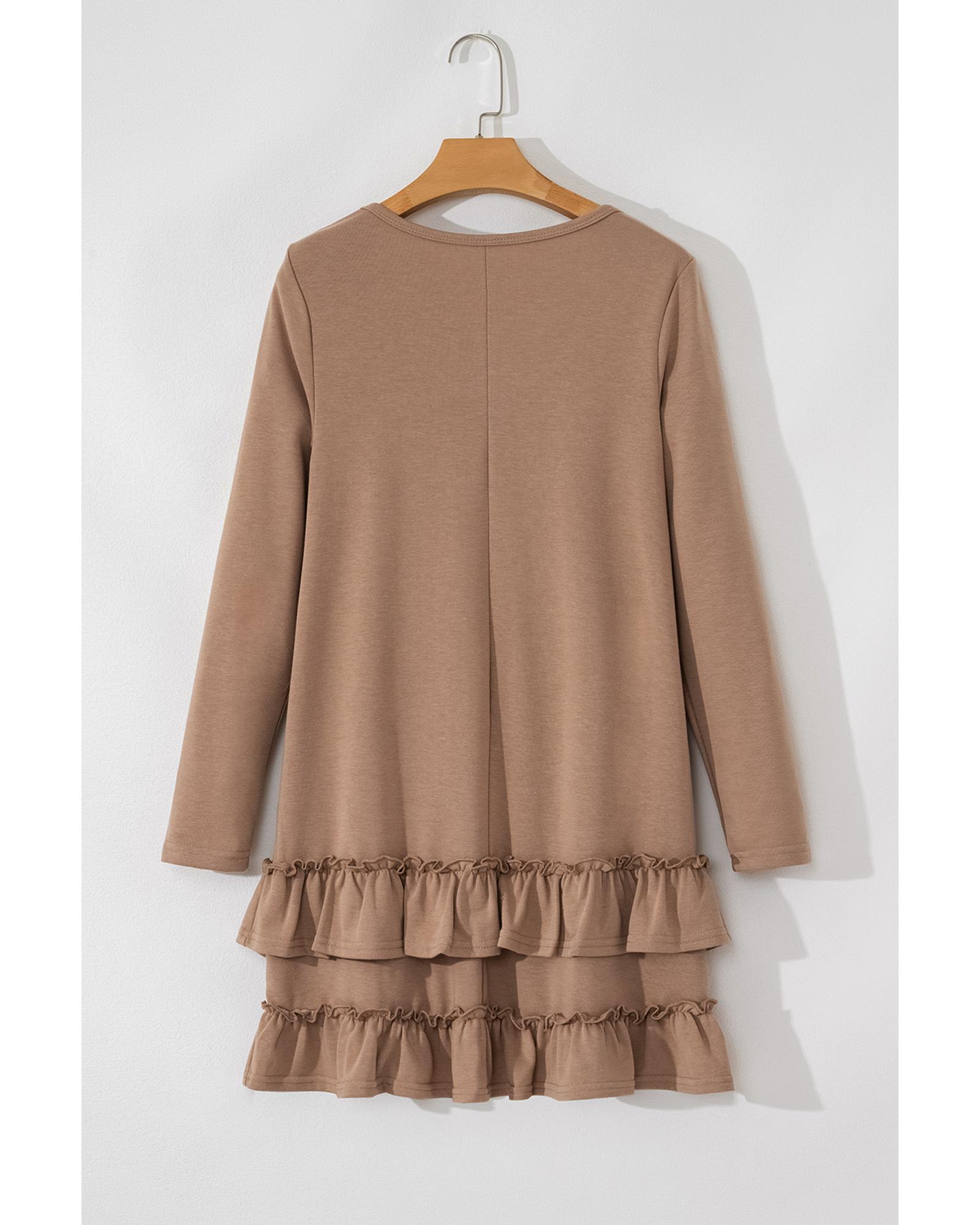 Goat Scoop Neck Tiered Ruffled Hem Long Sleeve Mini Dress – S