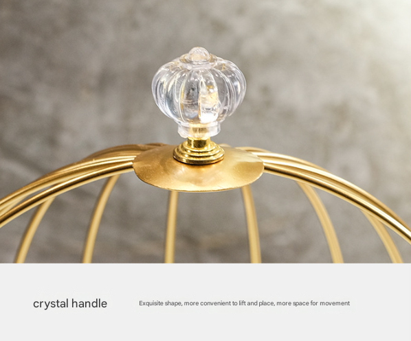 - Features a beautiful open birdcage silhouette with a gold-tone finish and a crystal-style knob for added glamour.
