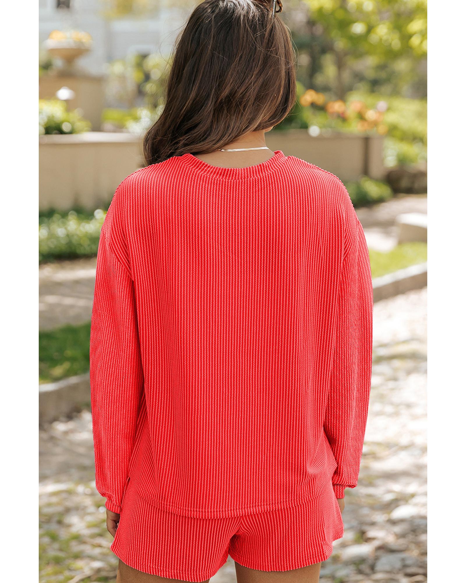 This festive set features a stylish long sleeve top and matching shorts, perfect for holiday celebrations. The design includes eye-catching sequin embellishments and Christmas tree patterns, creating a cheerful and festive look. Made from a cozy corded fabric, it offers warmth and comfort for the holiday season.
