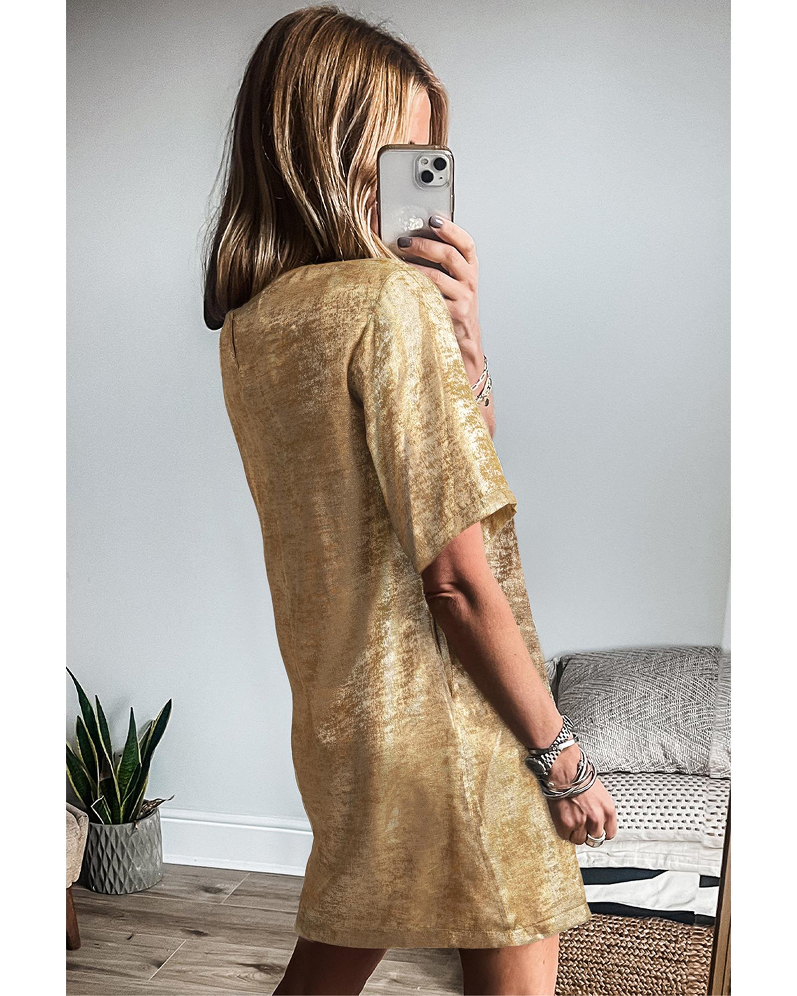 Gold Metallic Luster Crewneck Mini T-Shirt Dress – XL