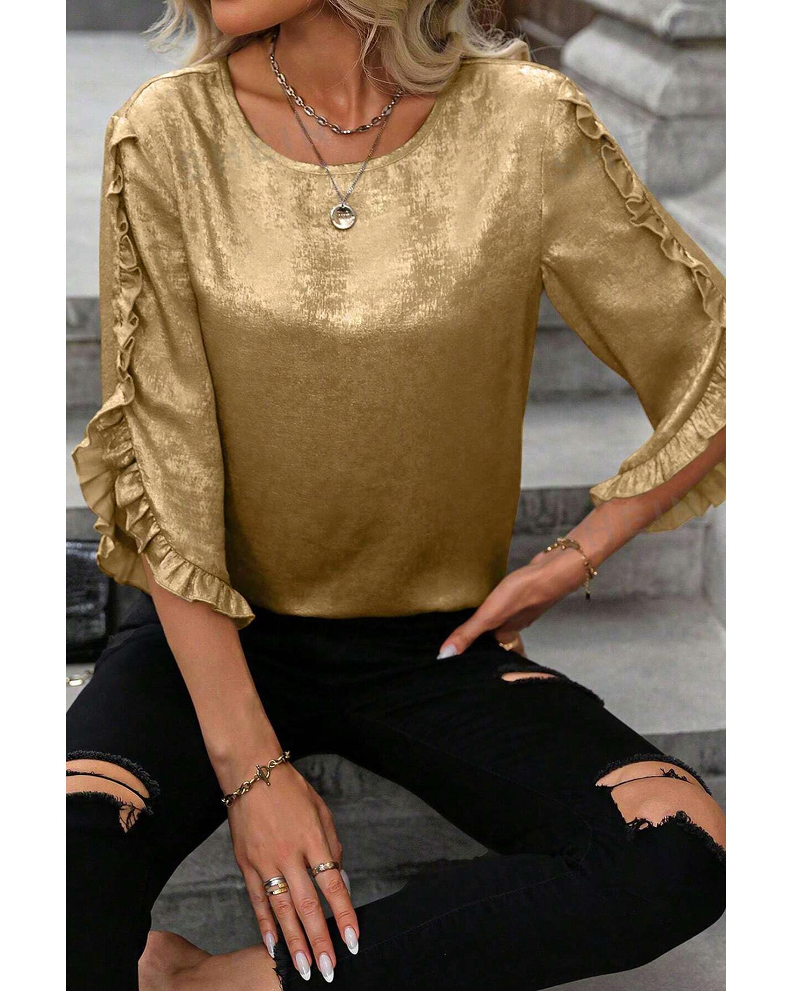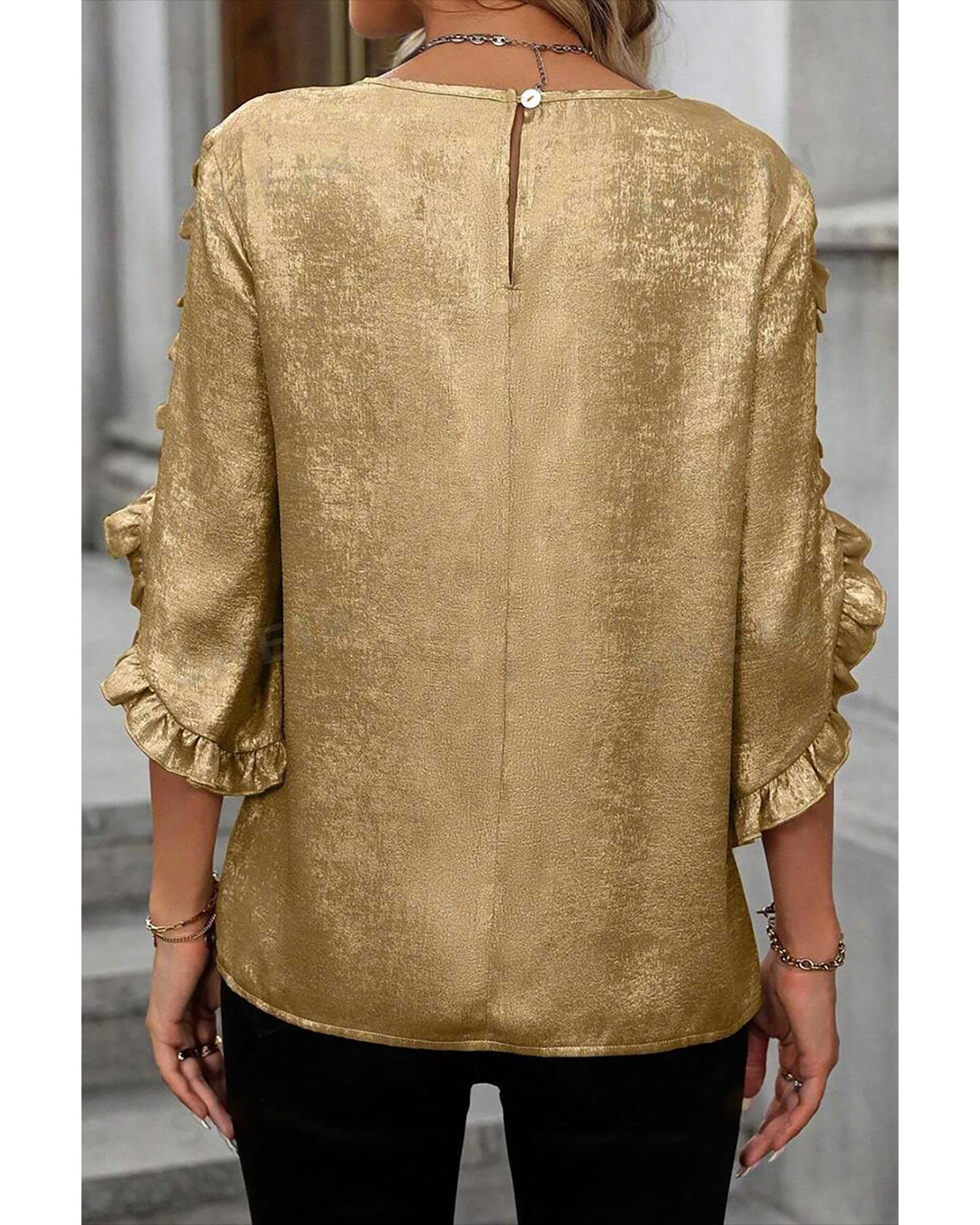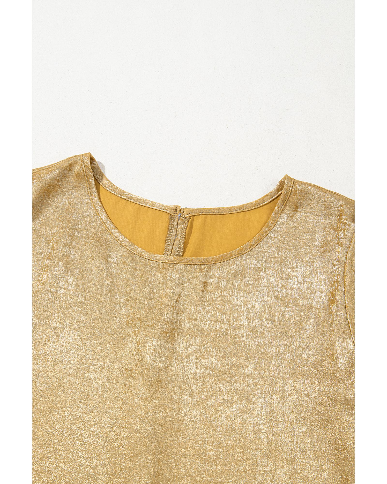 Gold Metallic Luster Frilled Half Sleeve Blouse – M