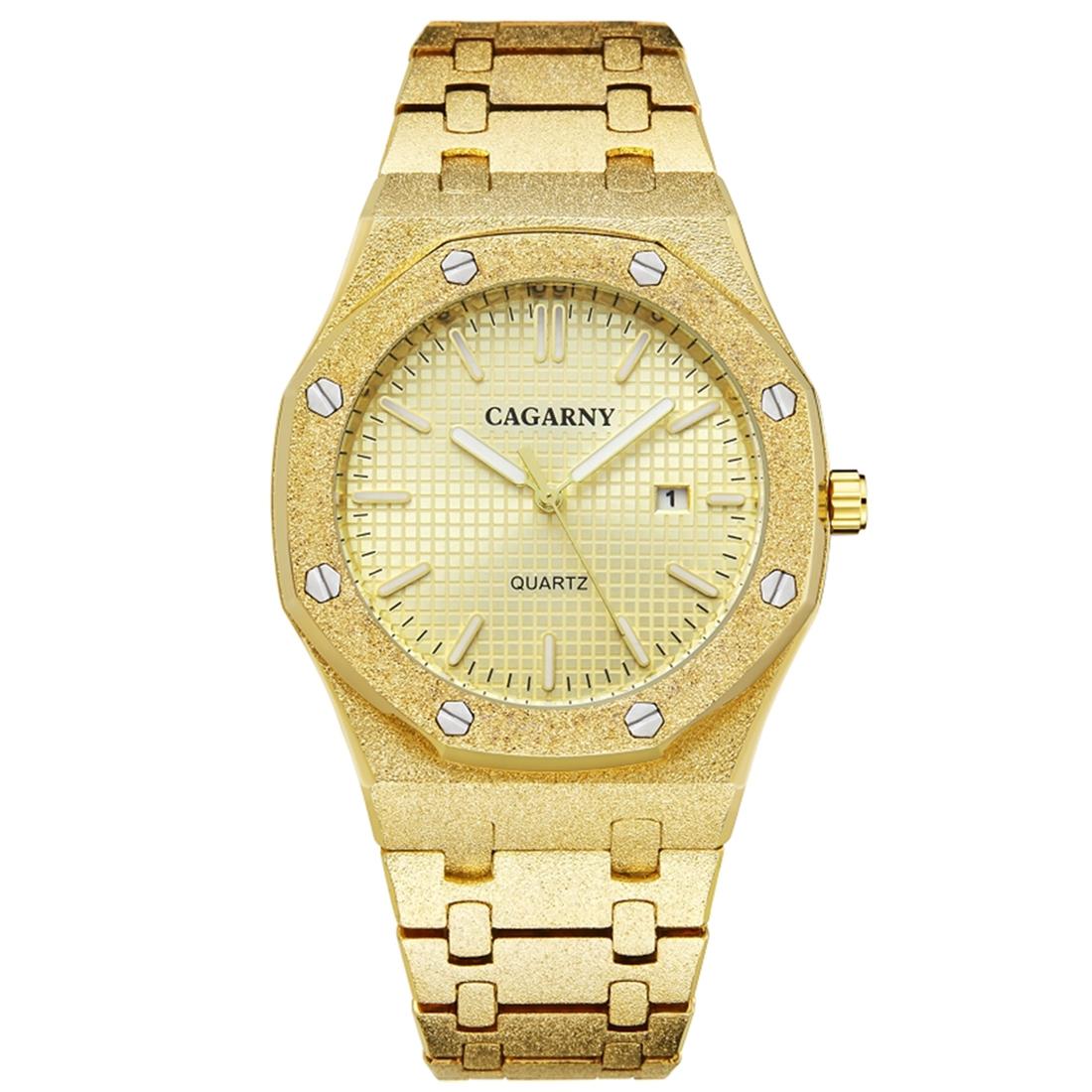 Gold Shell Black Dial Men Stainless Steel Watch with Dual Movement – Wa0335Sl