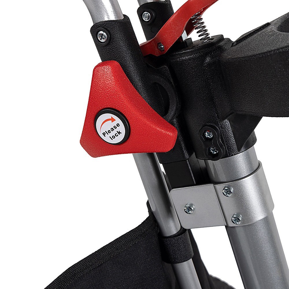 - Braking System: Front wheel-engaged handle brake for smooth operation