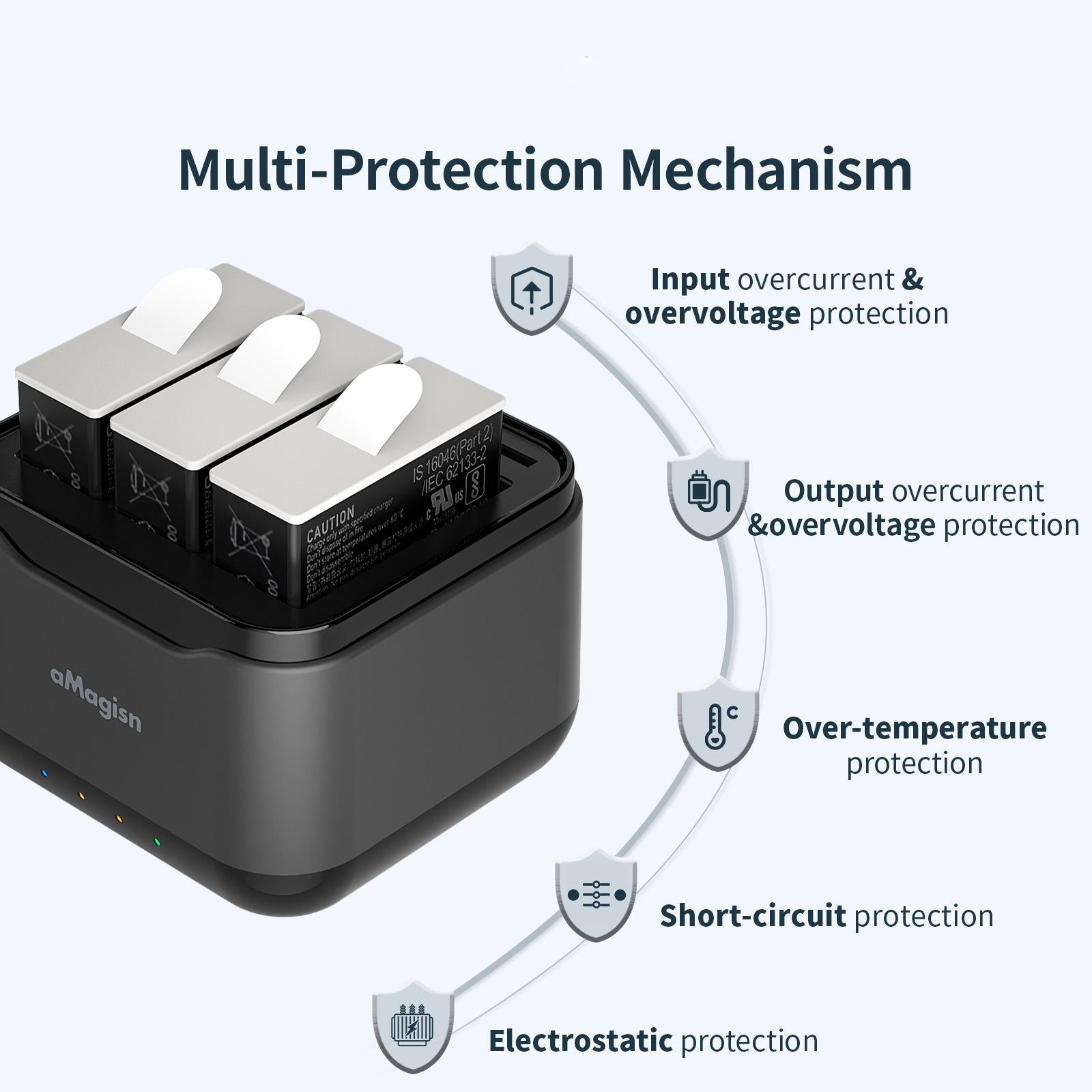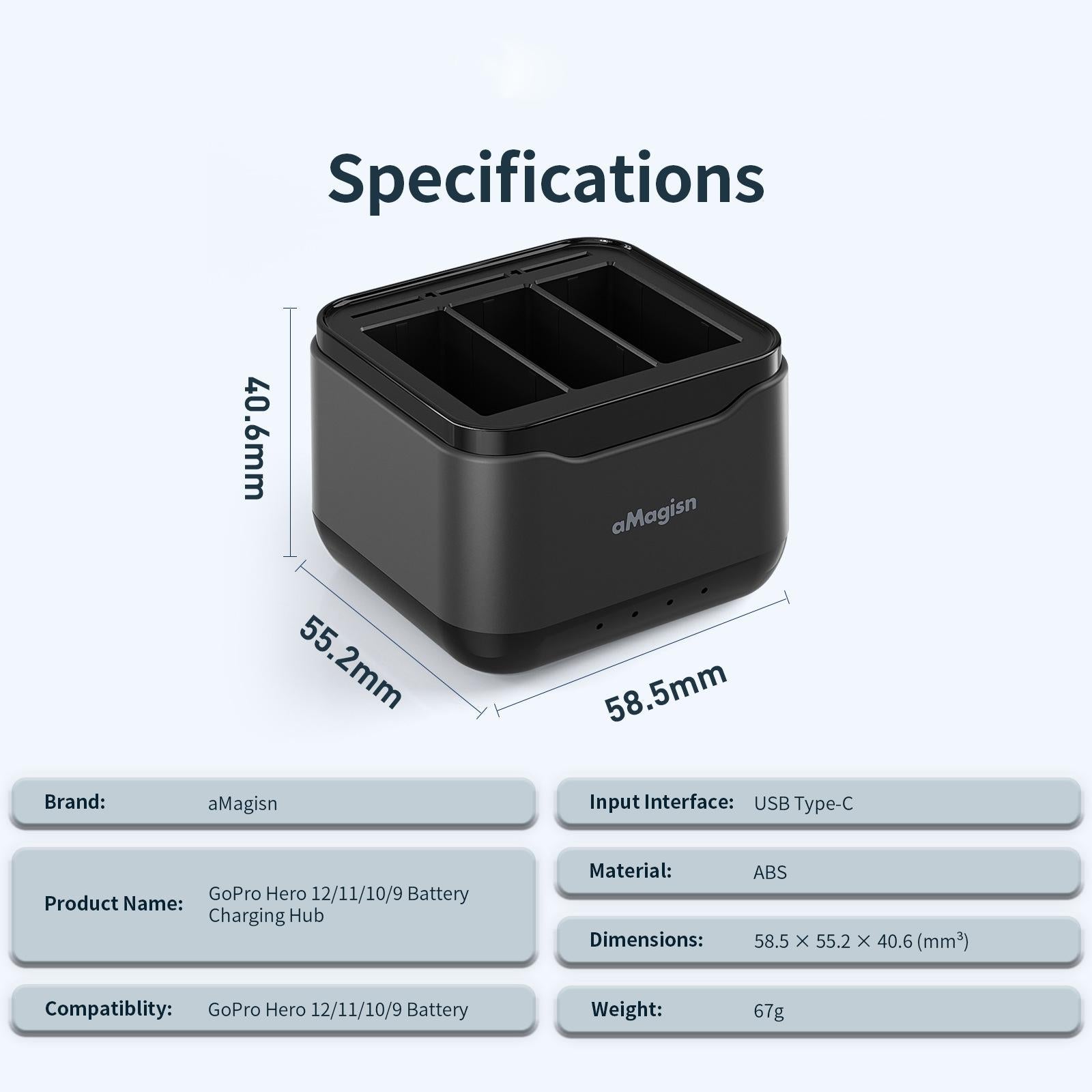 This battery charger seat is designed for quick and safe charging of multiple batteries simultaneously. It features a Type-C interface and supports efficient charging with multiple protection mechanisms to ensure safety and reliability. The compact size and lightweight design make it convenient for travel and everyday use.