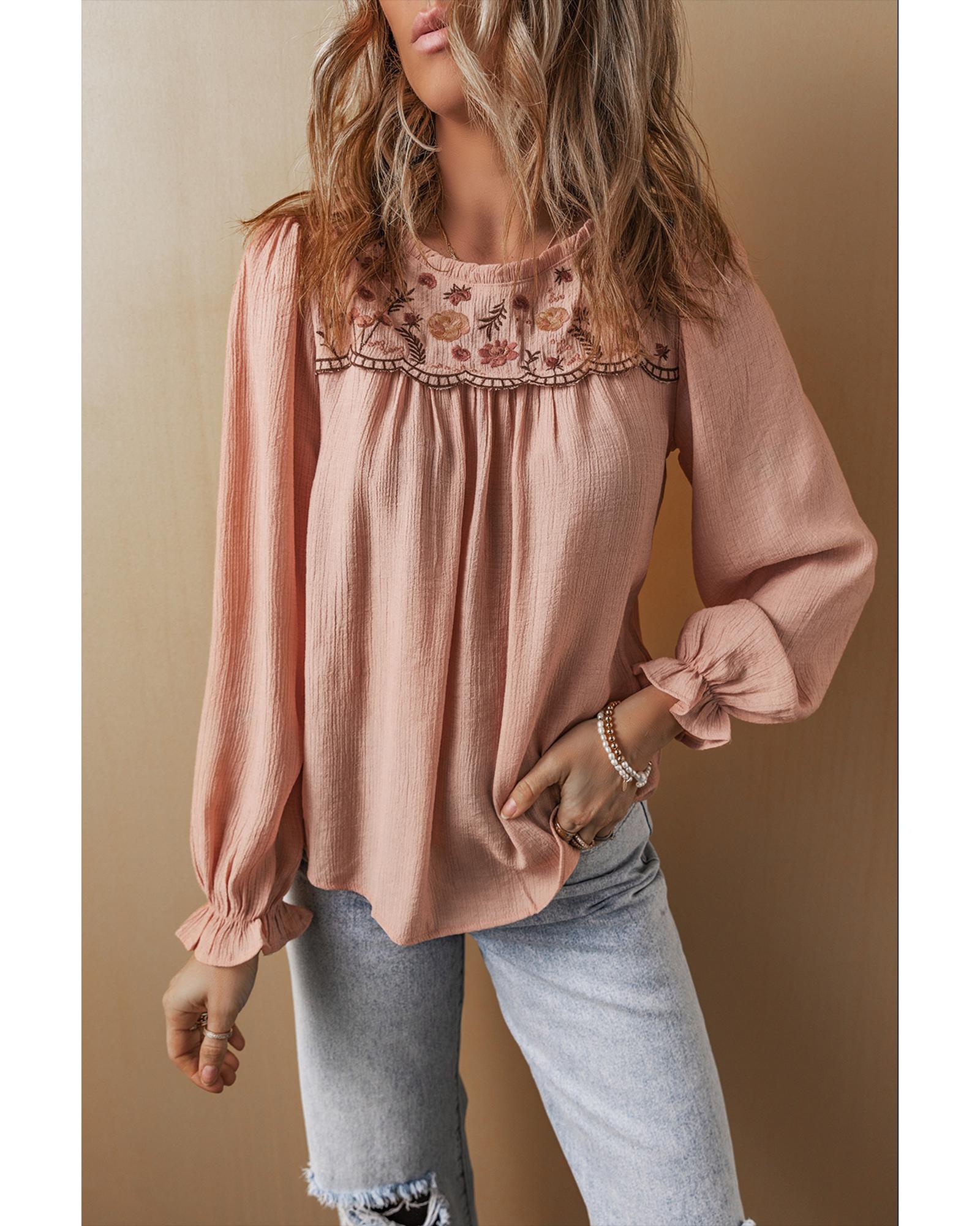 - Exquisite floral embroidery enhances the elegance of the blouse.