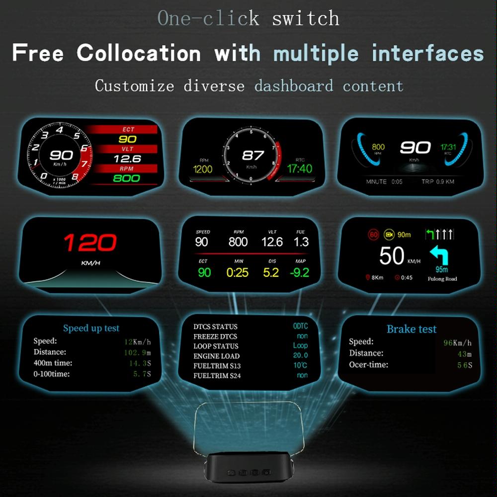 This GPS car head-up display provides comprehensive vehicle information to enhance driving safety and convenience. It offers real-time data on various vehicle parameters and alerts for potential issues, making it a valuable tool for drivers seeking to monitor their vehicle’s performance effectively.