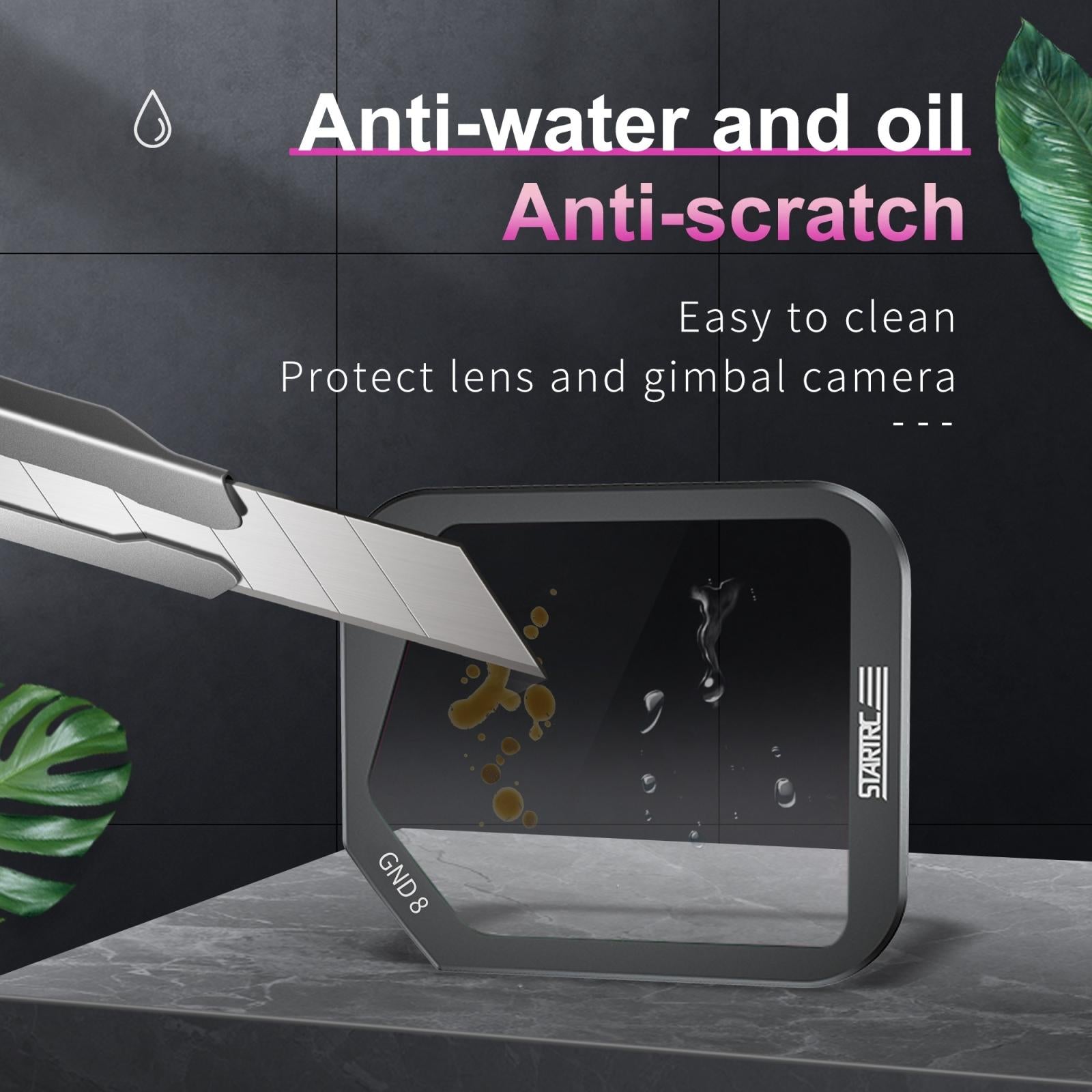 This gradient ND lens filter is specially designed for the DJI Mavic 3 Classic drone. It features a half-transparent and half-gray gradient mirror to reduce light in specific areas, helping to balance exposure and prevent overexposure of highlights. The filter is constructed with an air-width aluminum alloy frame and AGC optical glass to ensure accurate color reproduction. It is waterproof, oil-proof, tempered, scratch-resistant, and easy to clean, maintaining its waterproof lotus flower effect. The lightweight design ensures high precision fitting without affecting flight performance.