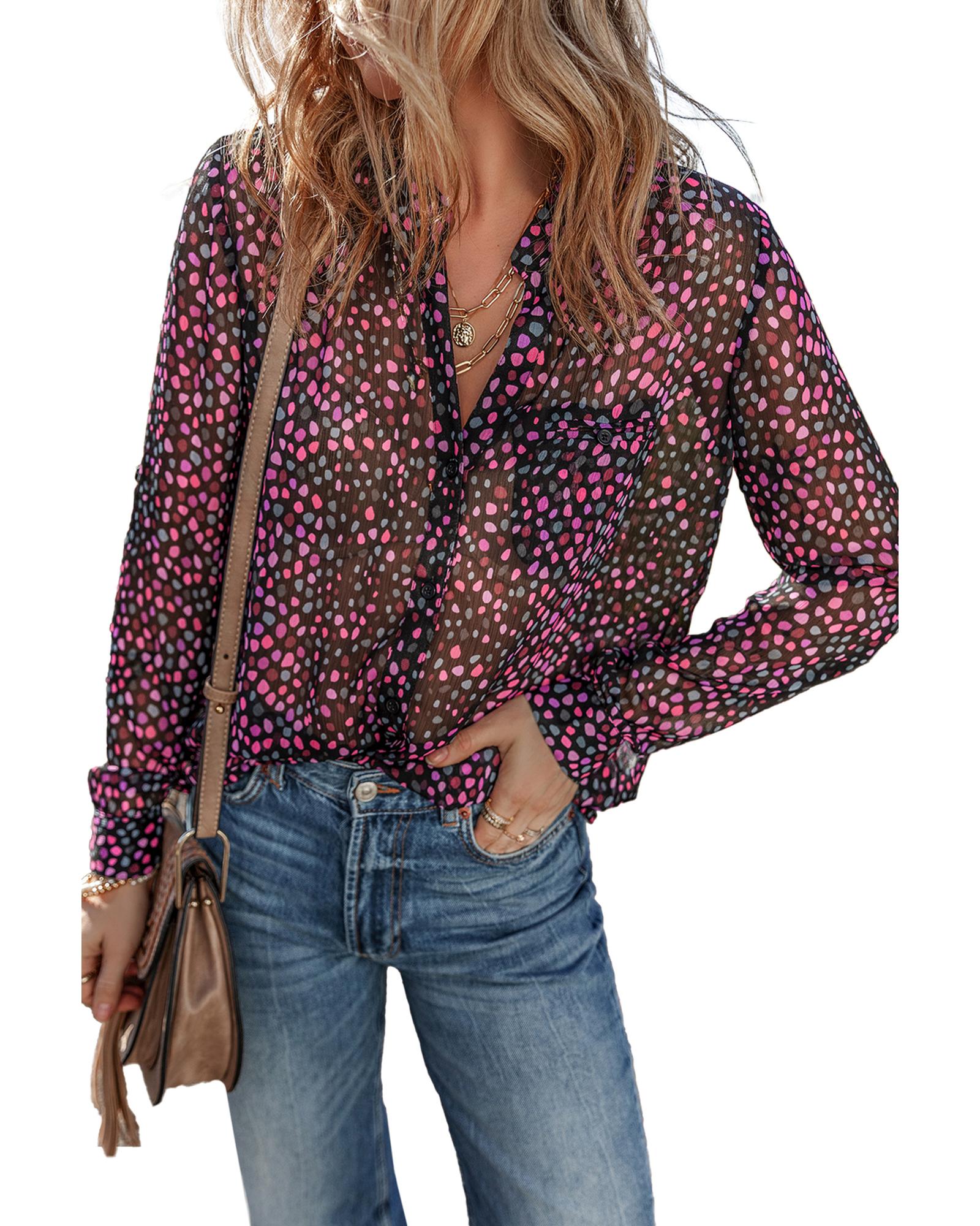 This casual shirt features a stylish polka dot print and a comfortable fit, making it suitable for various occasions. It is designed with a buttoned closure and a chest pocket for added detail, offering both convenience and a trendy appearance.