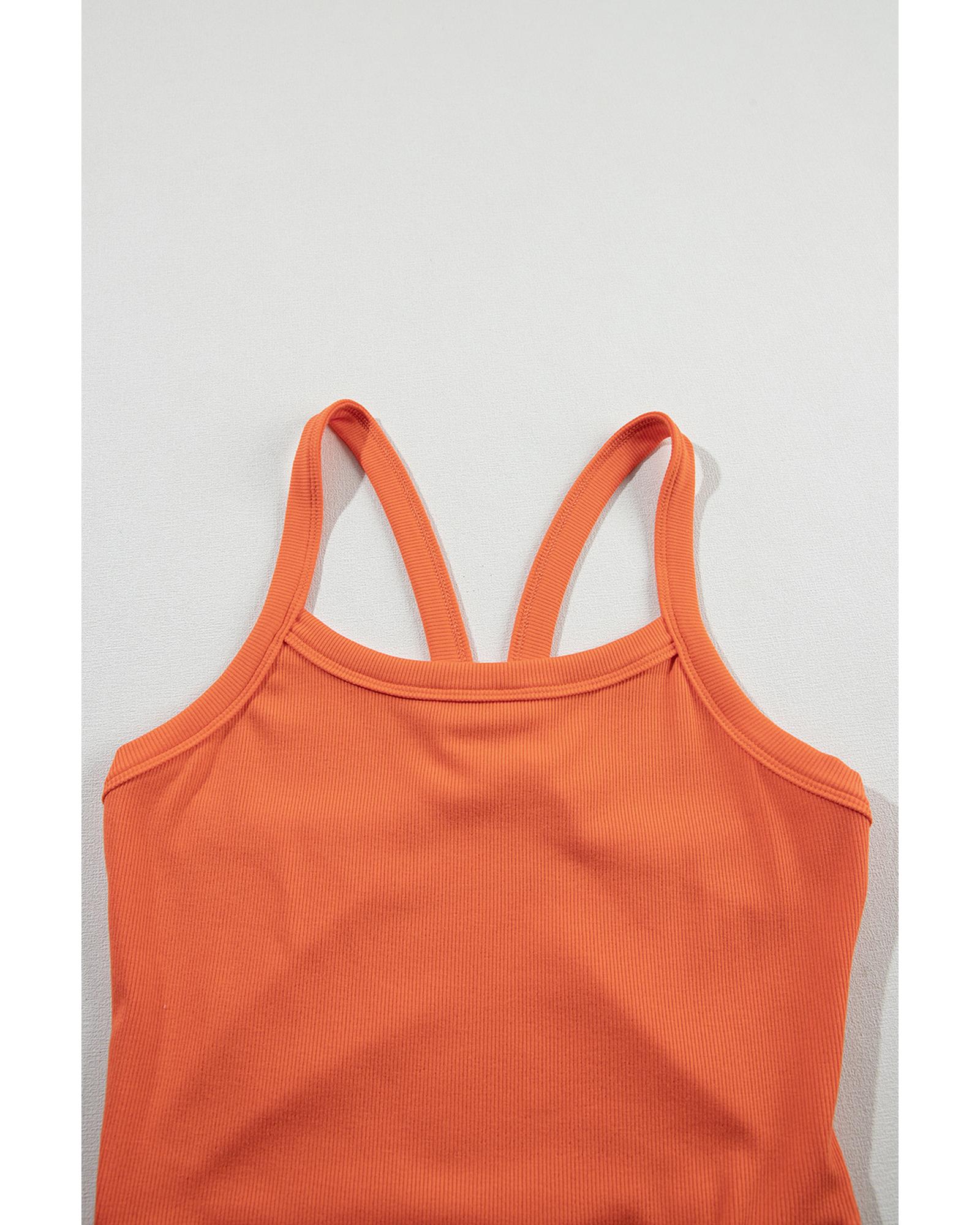 Grapefruit Orange Athletic Ribbed Cropped Cami Top – L