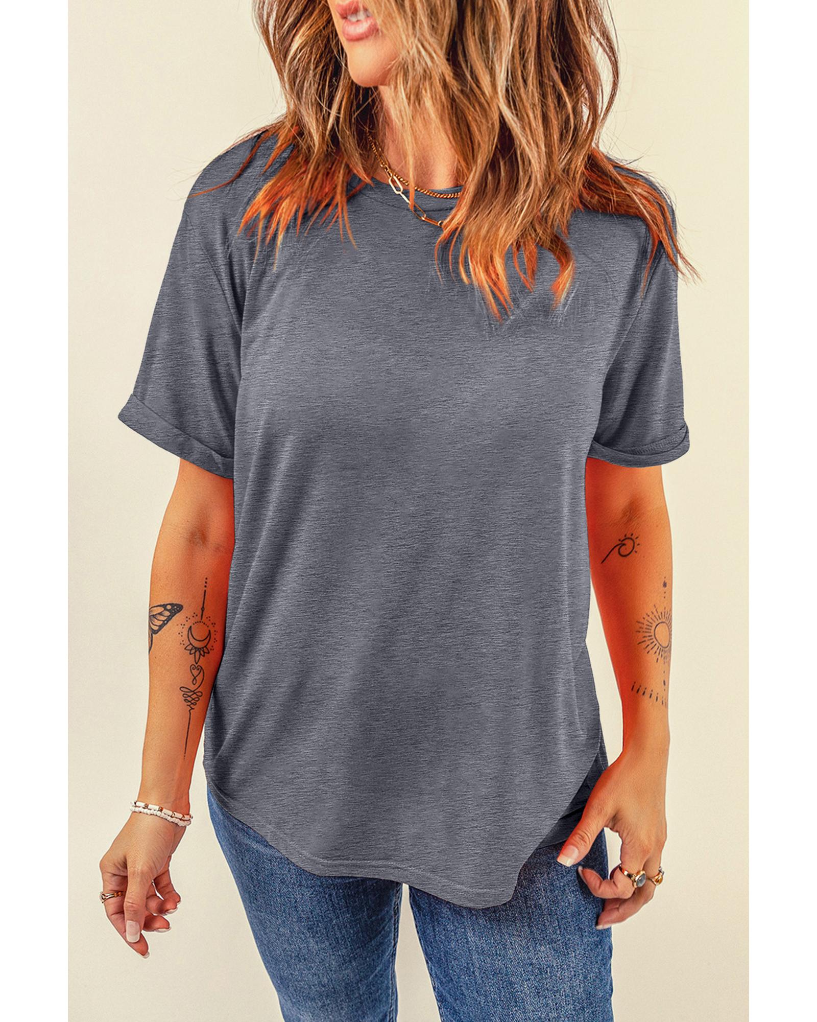 Gray Casual Plain Crew Neck Tee - M Original price was: $53.99.Current price is: $28.99.