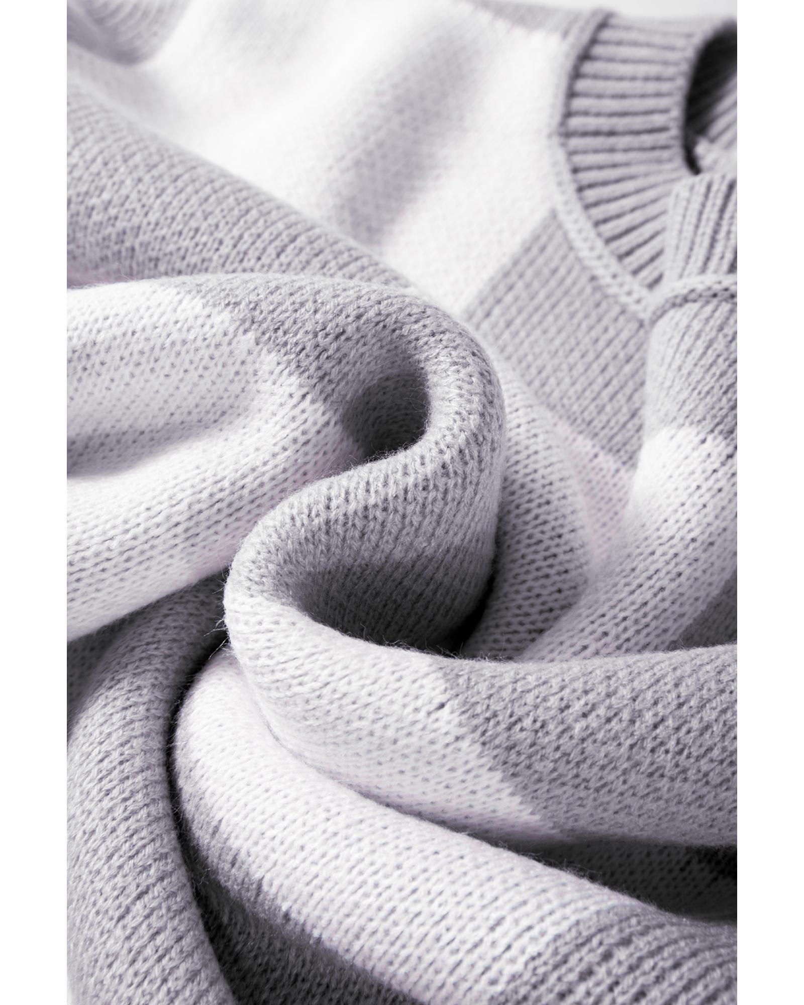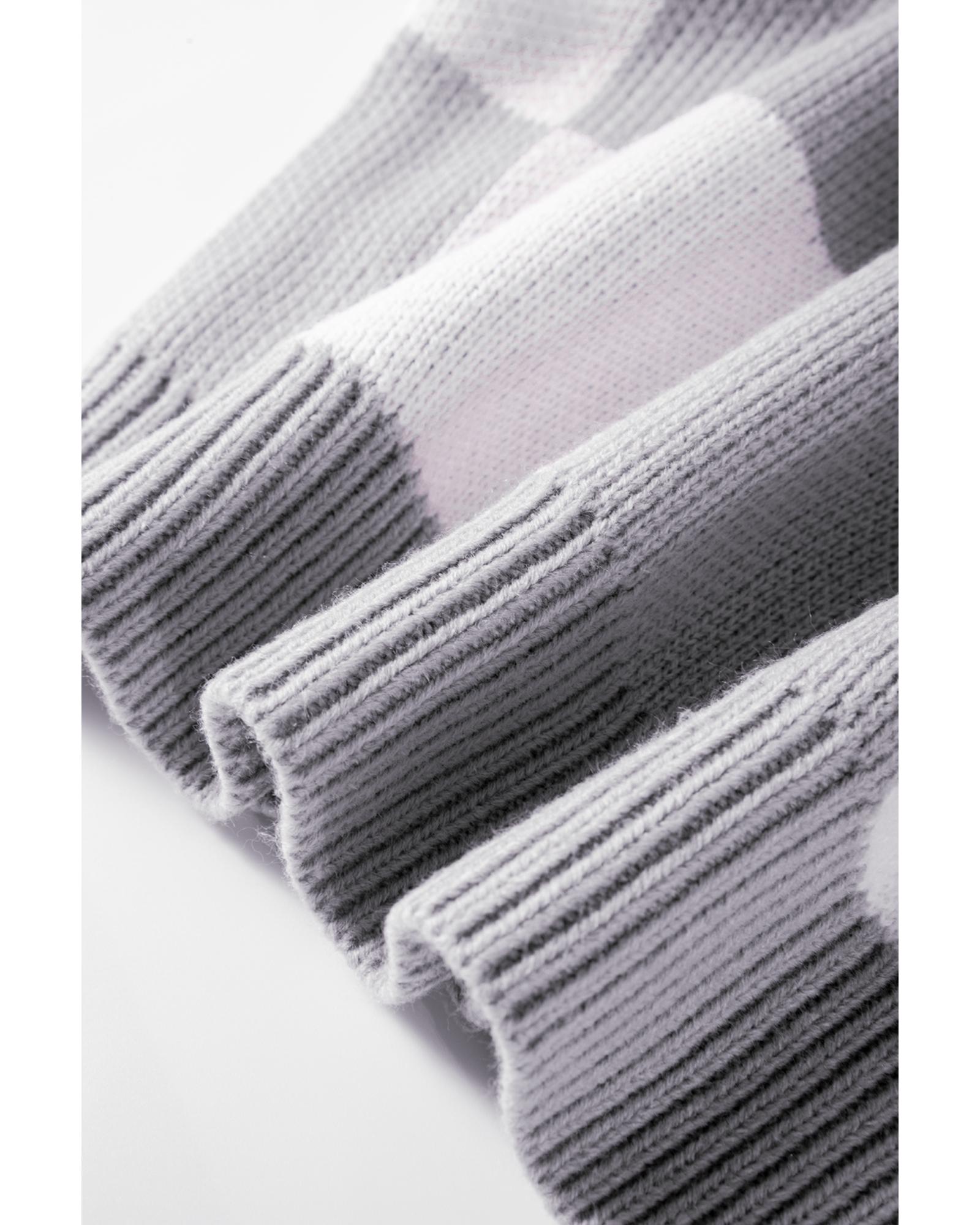 This stylish gray checkered bishop sleeve sweater combines modern design with comfort, making it a versatile addition to any wardrobe. Crafted from premium fabric, it offers a soft and luxurious feel, perfect for dressing up or casual wear. The trendy checkered knit pattern and bishop sleeve design add a fashionable touch, while the high elasticity ensures a comfortable fit for various body types.