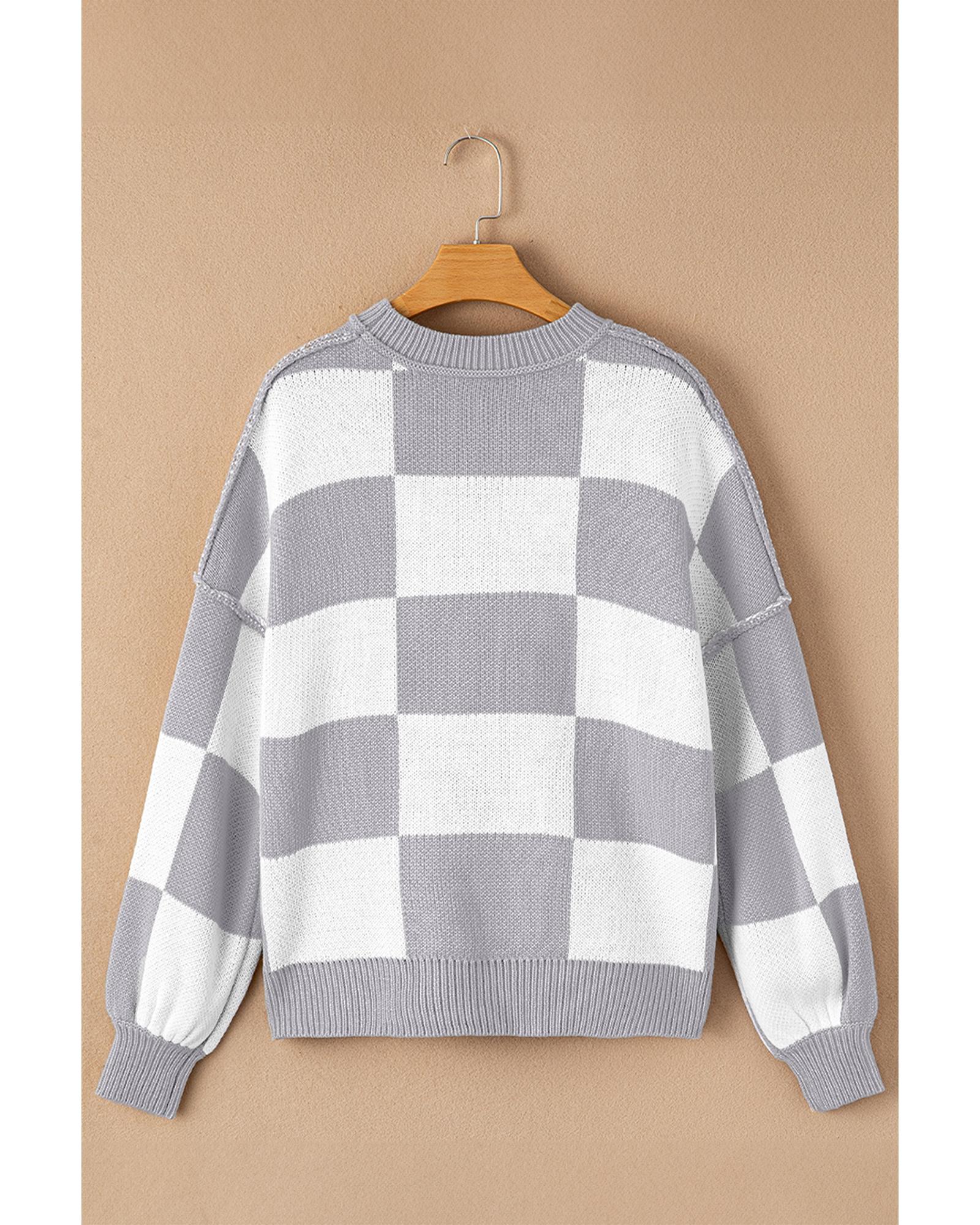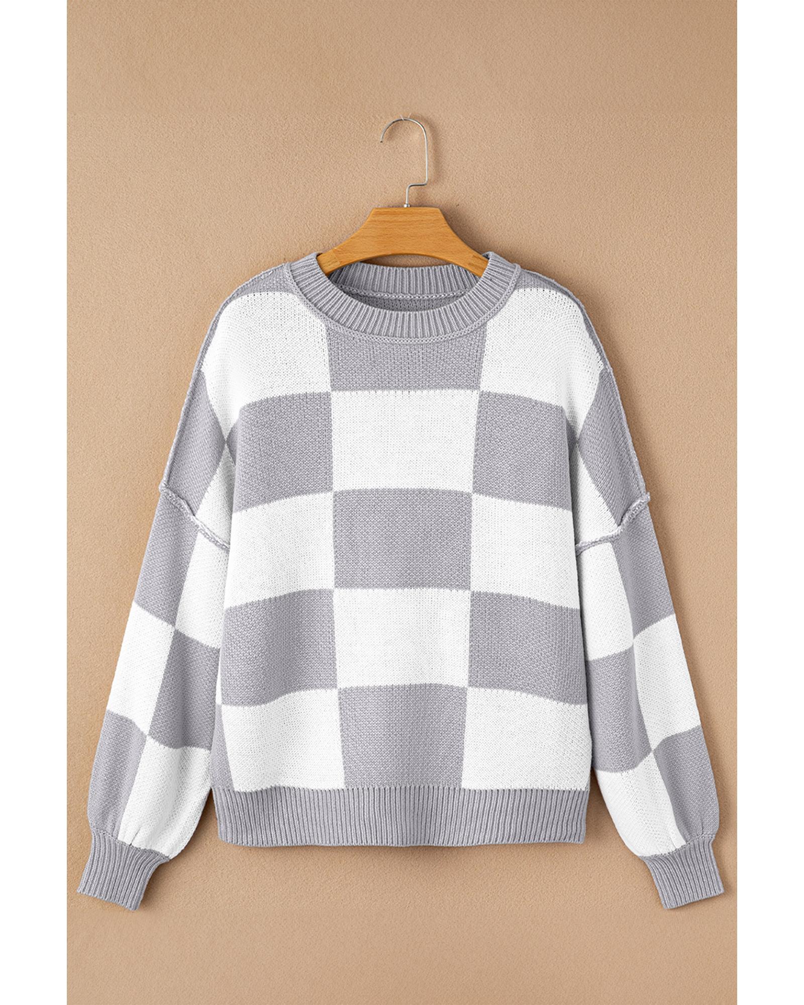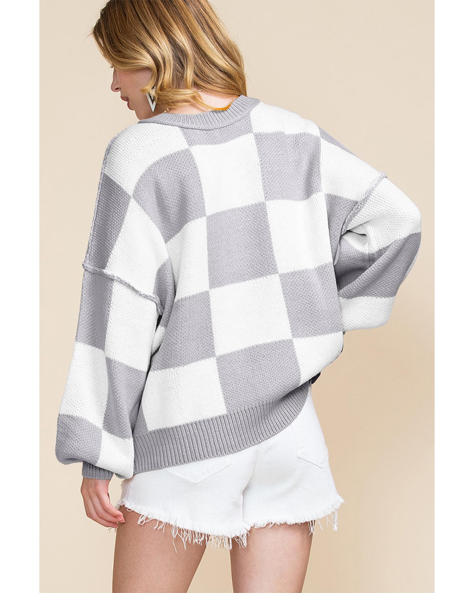 - 1 x Gray Checkered Bishop Sleeve Sweater