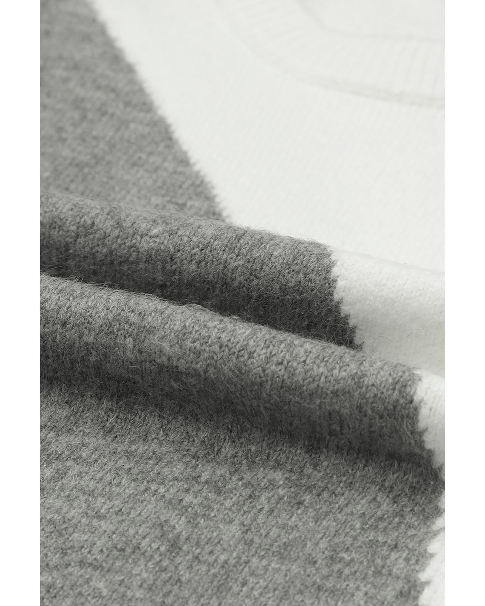 This gray colorblock ribbed trim round neck sweater offers a stylish and comfortable design suitable for various occasions. Its modern look is complemented by a versatile fit that can be dressed up or down, making it an essential addition to your wardrobe.