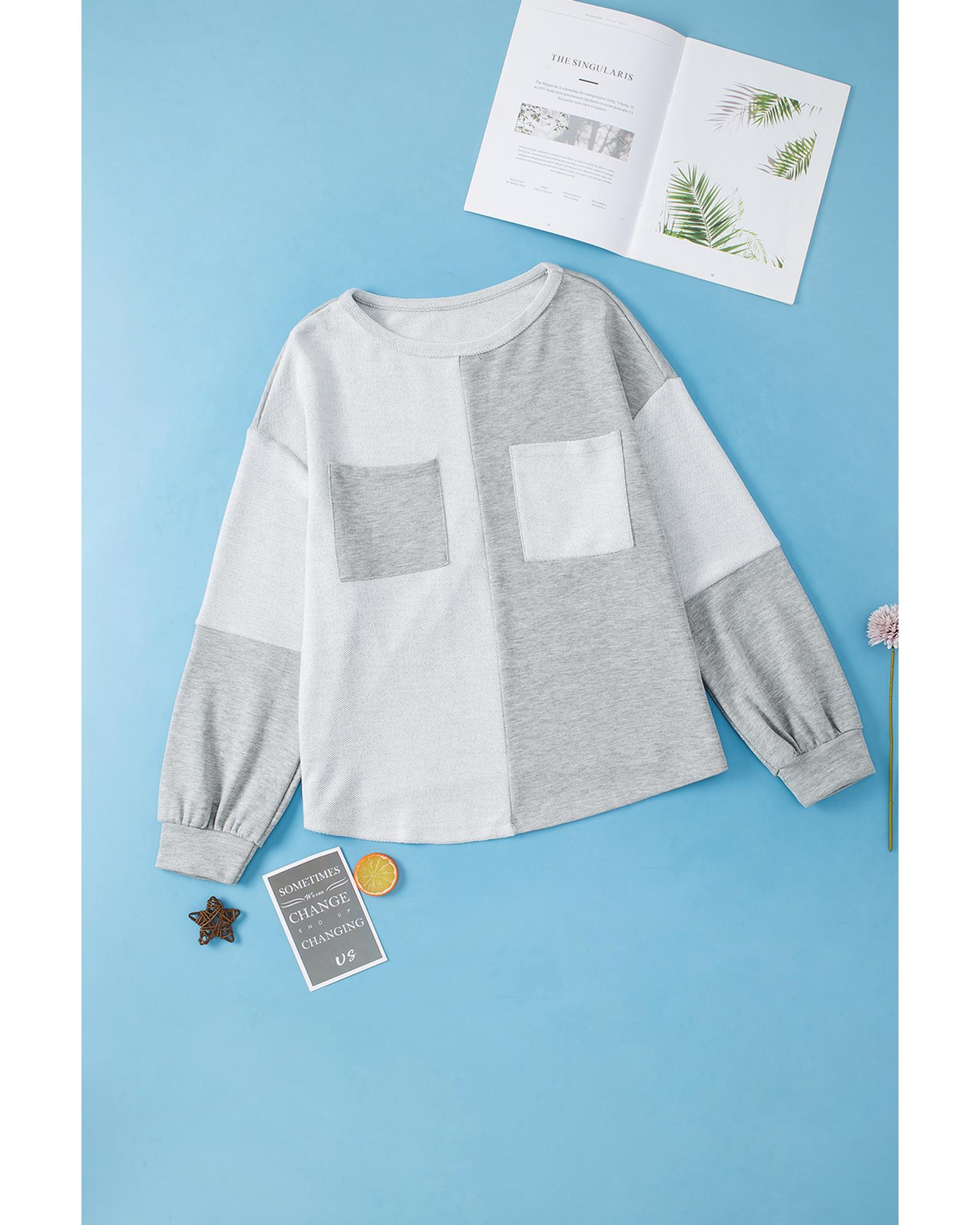 Gray Contrast Patchwork Double Chest Pocket Top – L