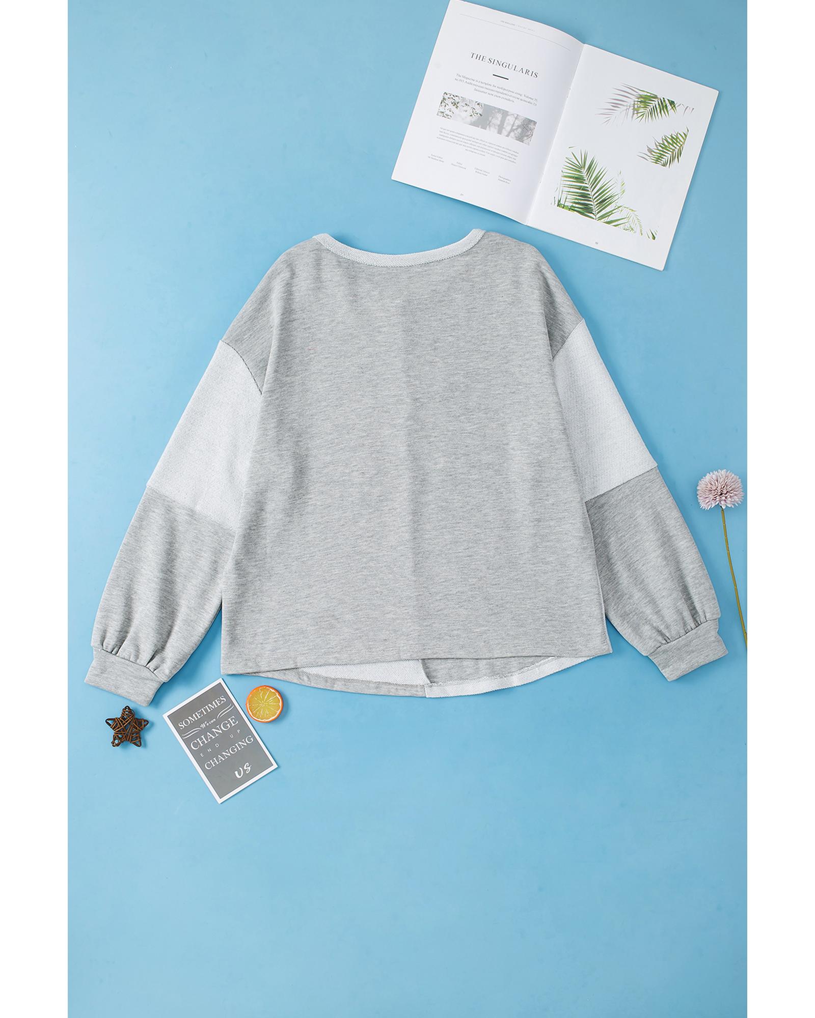 Gray Contrast Patchwork Double Chest Pocket Top – S