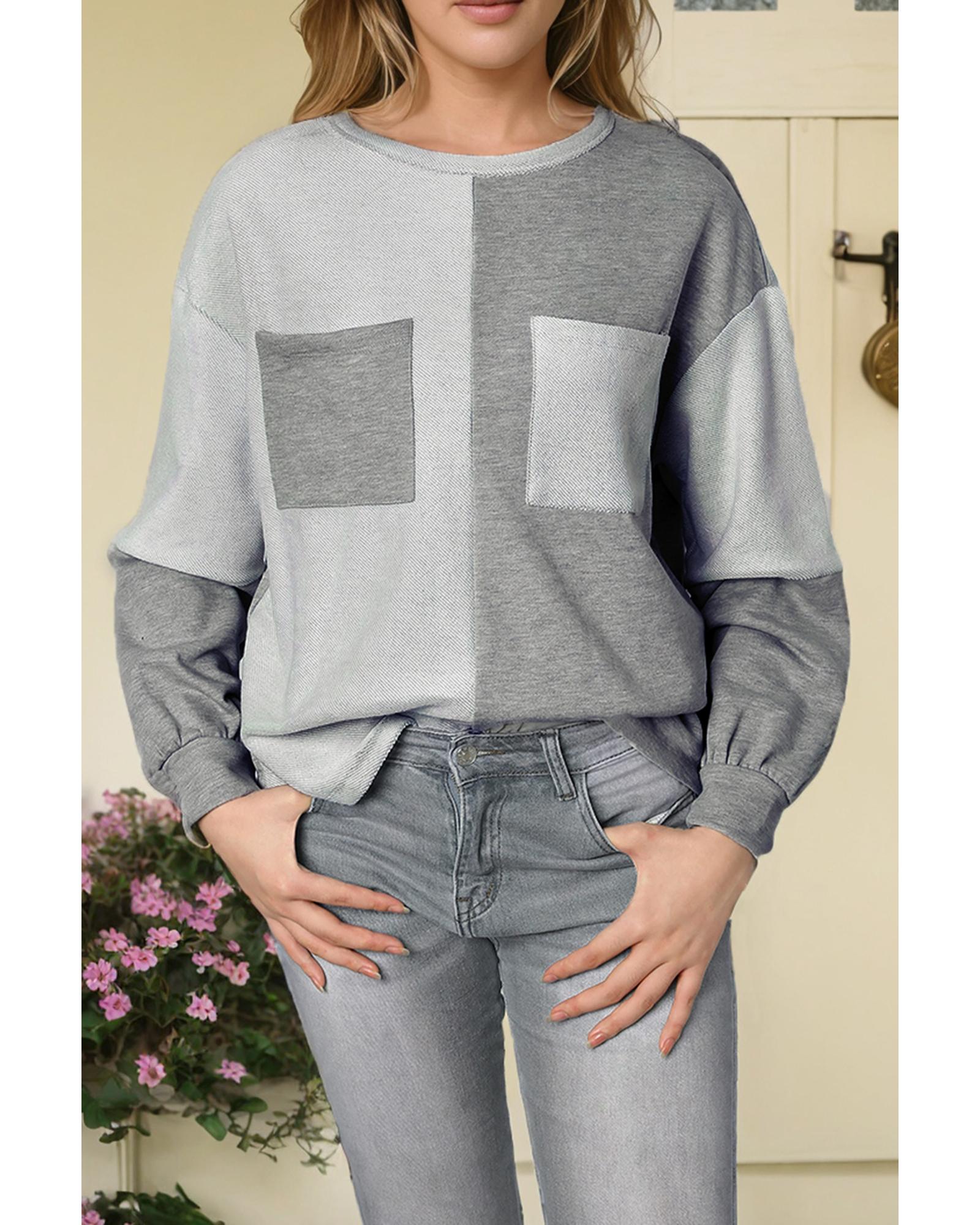 Gray Contrast Patchwork Double Chest Pocket Top – XL