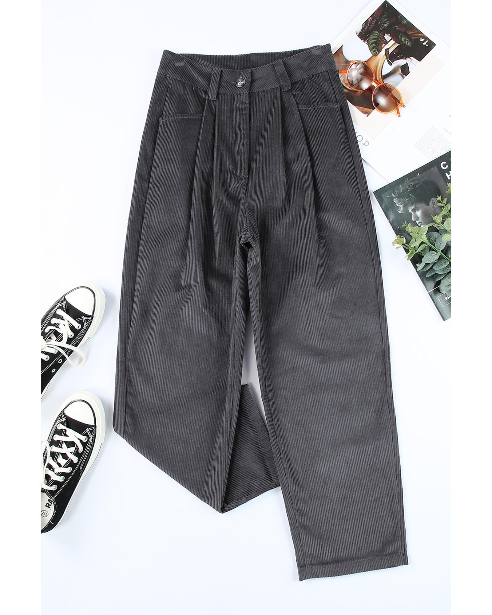 These gray corduroy high waist straight leg pants are designed for a trendy and comfortable fit, suitable for cold winter days. They feature a classic solid color, a zipper and button closure, and functional pockets, making them ideal for casual, leisure, and daily wear. The high waist design offers a flattering silhouette and easy pairing with various tops and shoes.