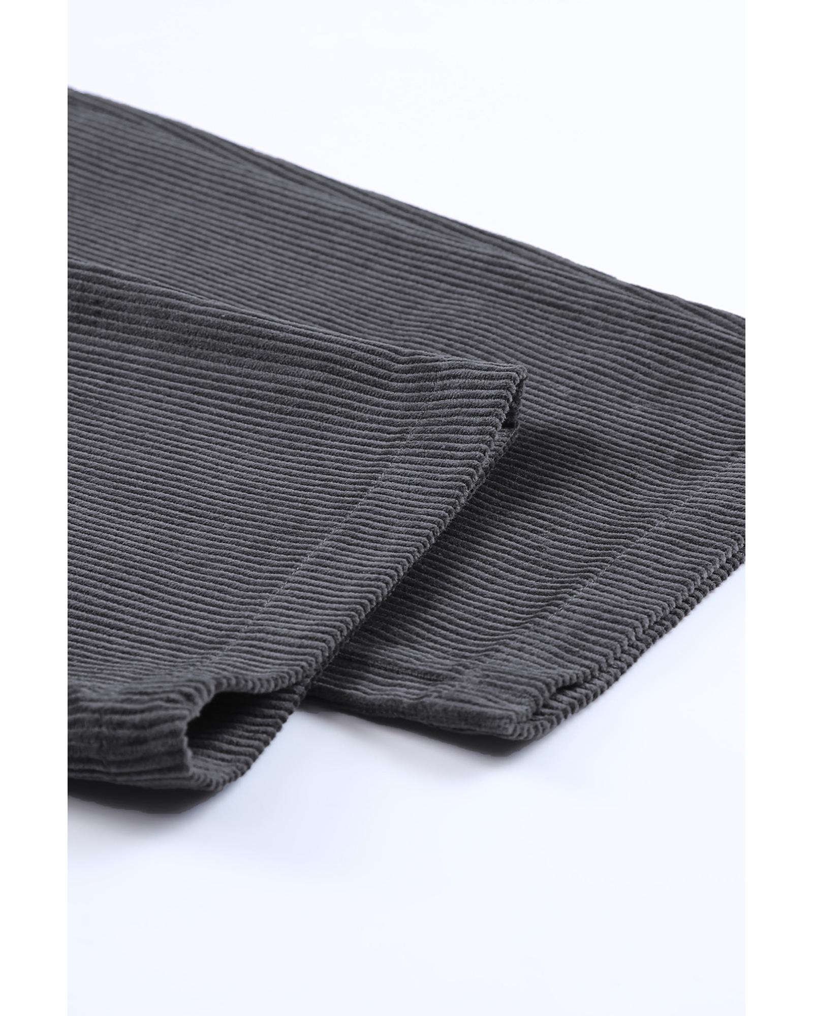 These gray corduroy high waist straight leg pants are designed for a trendy and comfortable fit, suitable for cold winter days. They feature a classic solid color, a zipper and button closure, and convenient pockets, making them ideal for casual, leisure, and everyday wear. The pants can be easily paired with various tops and shoes for versatile styling.