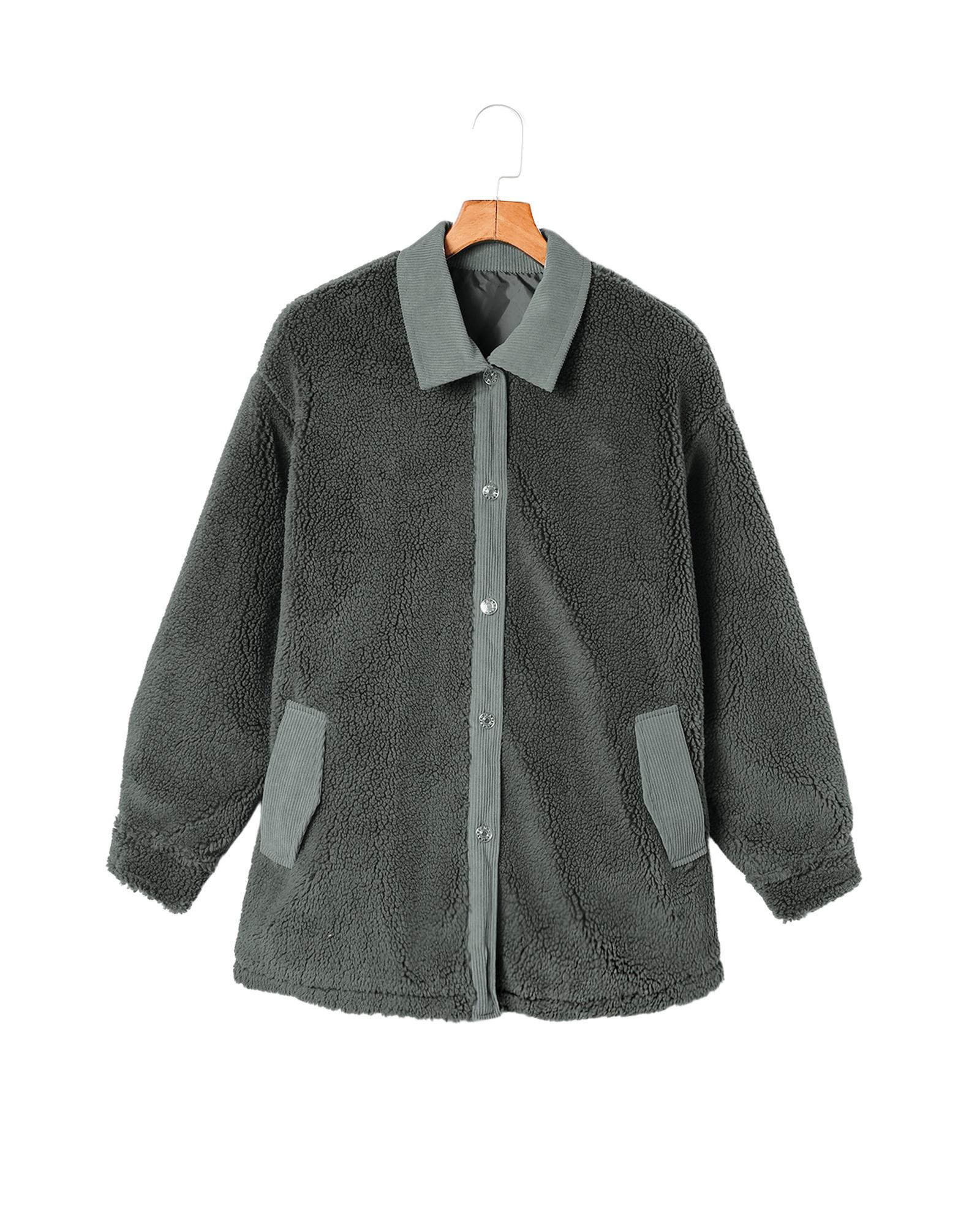 Gray Corduroy Trim Elbow Patch Sherpa Jacket – M