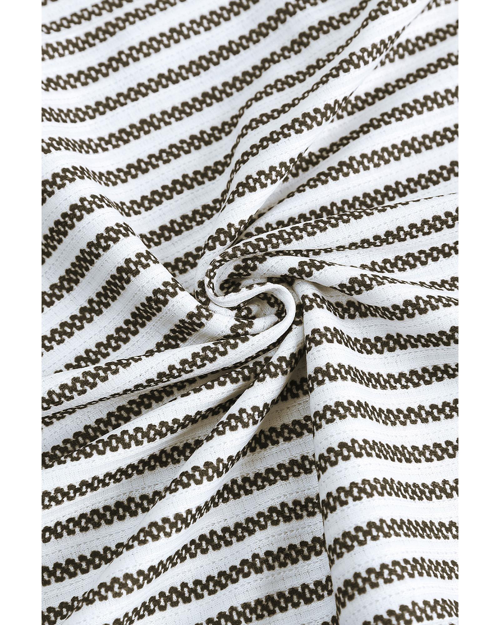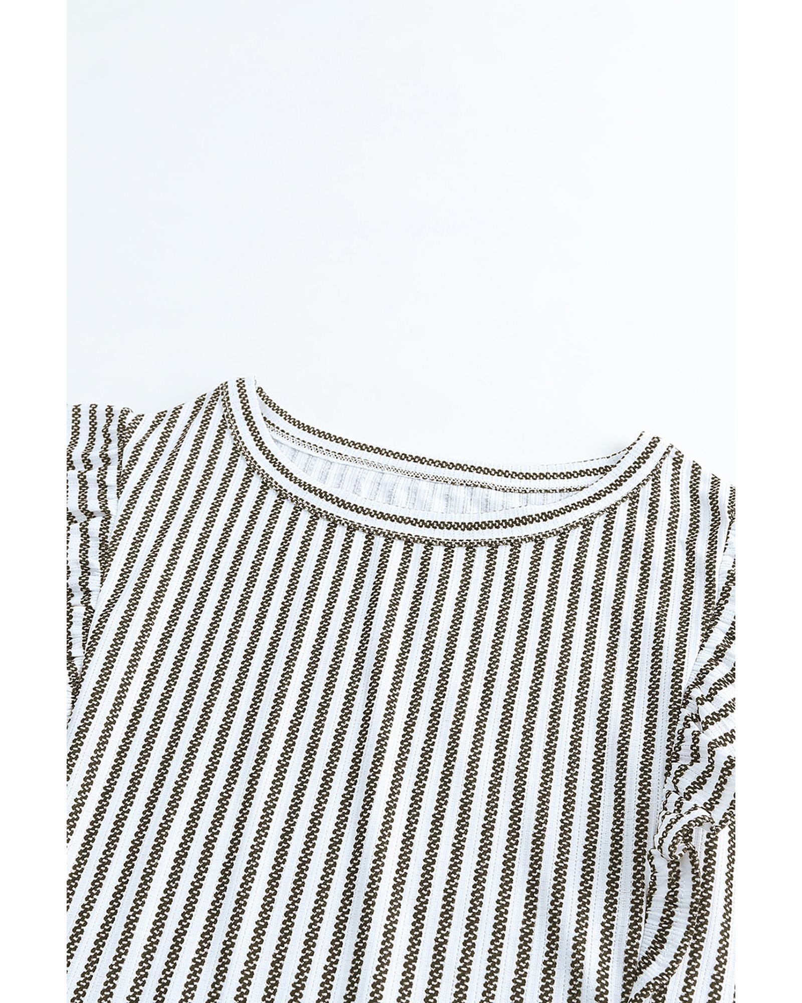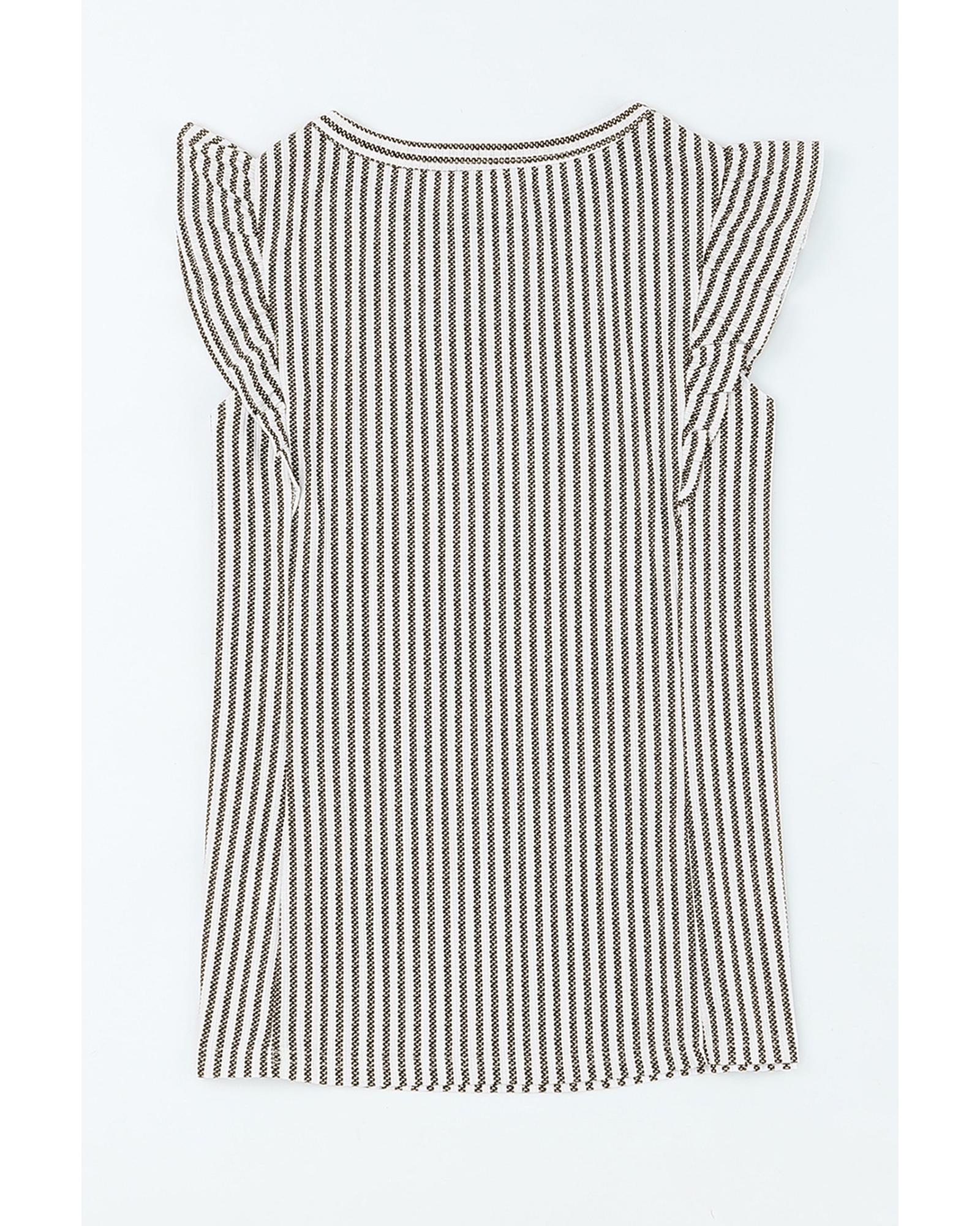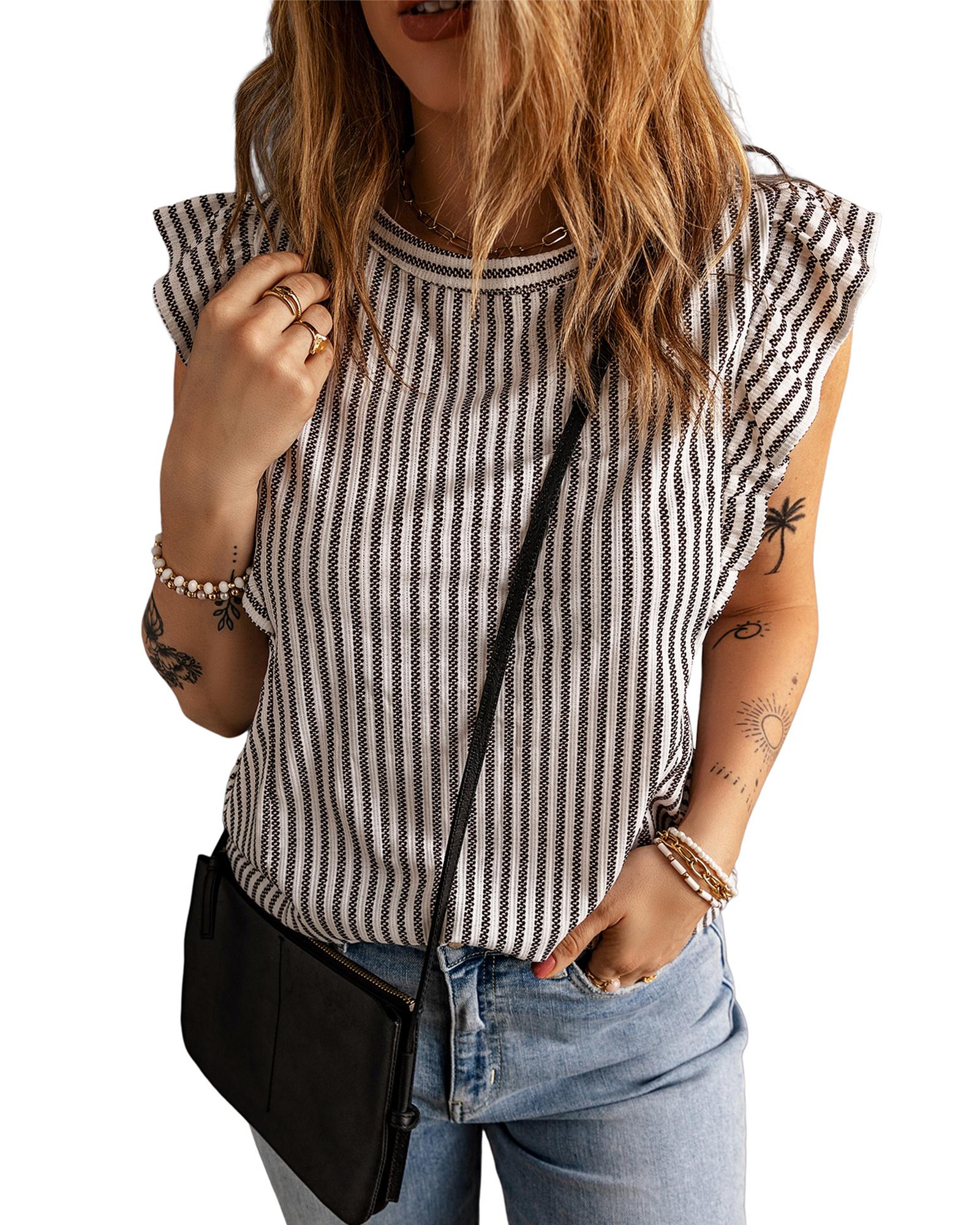 This striped tank top features a casual yet chic design with a trendy fitted look. It combines a crew neck and slim fit style, making it suitable for most body shapes. The ruffled detailing adds an elegant and cute touch, making it versatile for daily wear and easy to match with jeans, sneakers, bags, and accessories.
