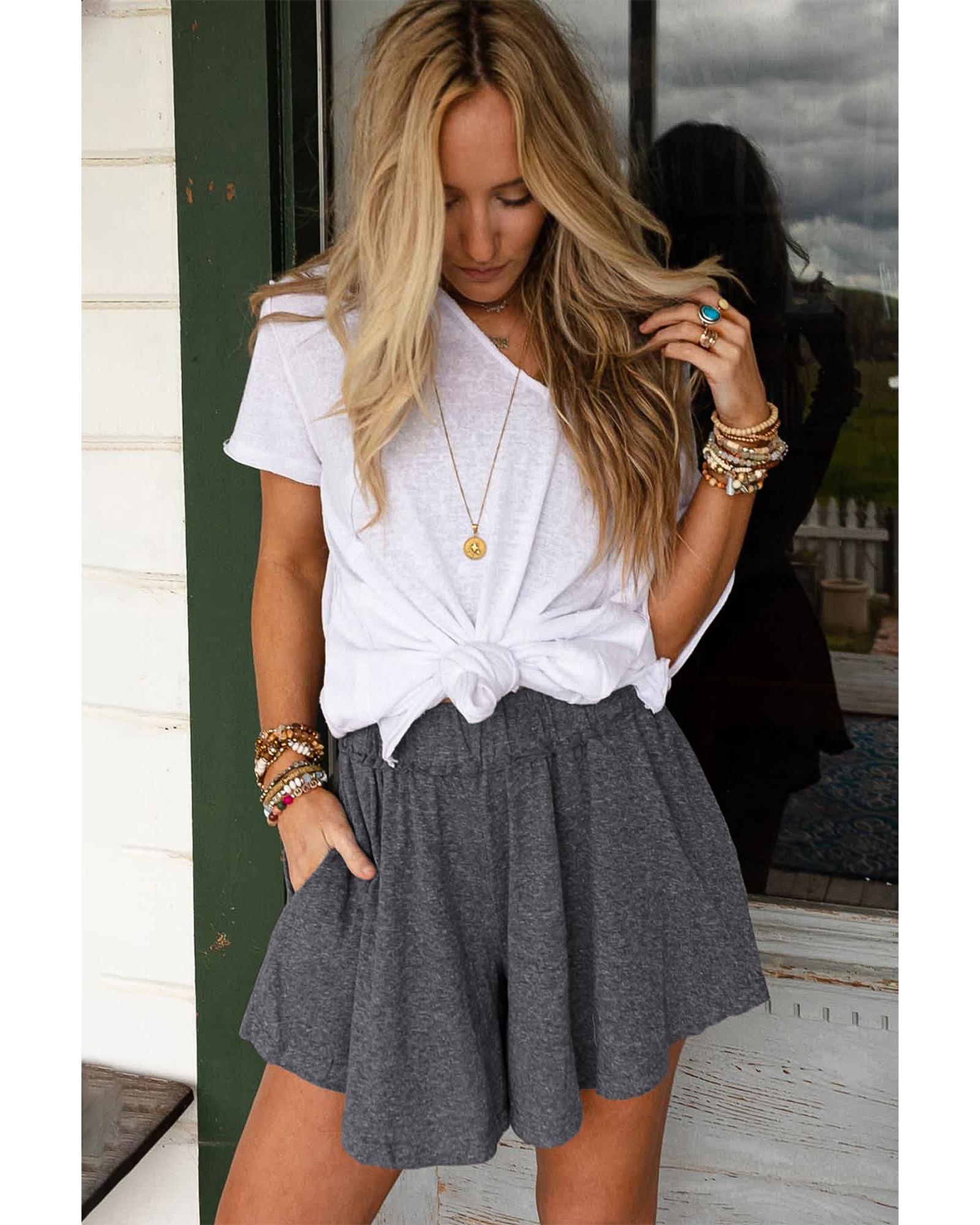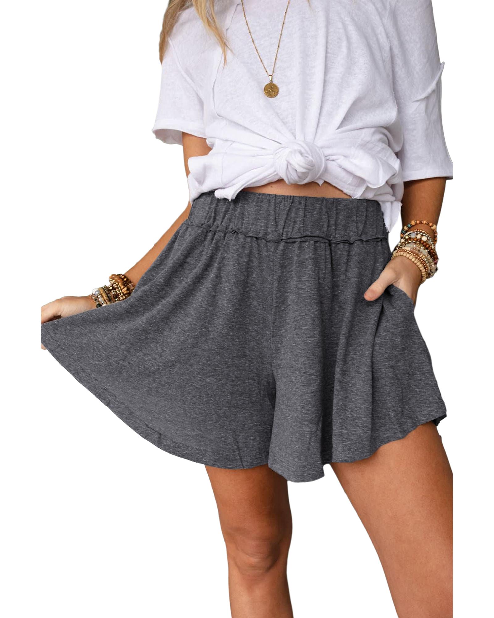Package Content: One pair of gray elastic waist culotte shorts.