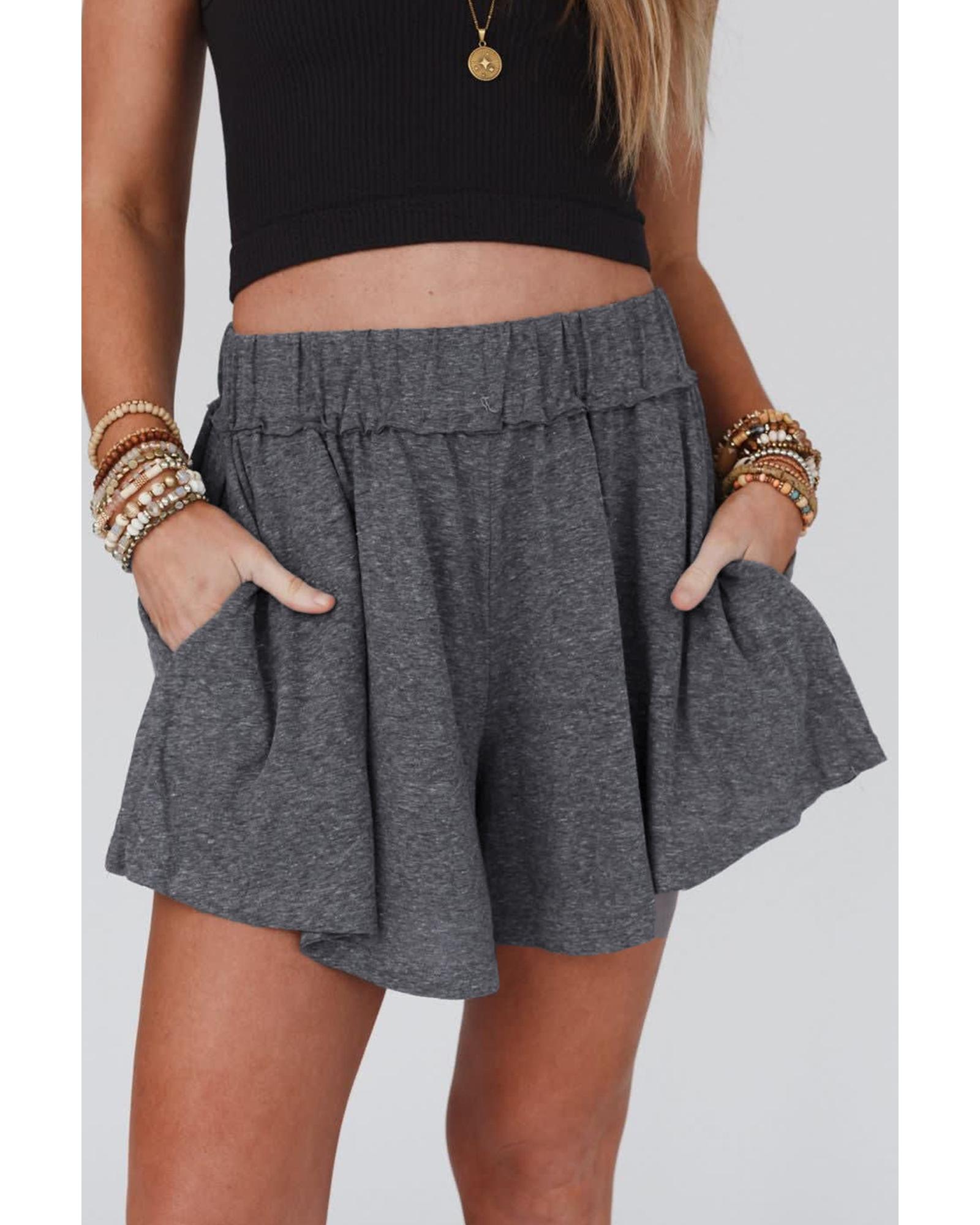 Package Content: 1 pair of gray elastic waist culotte shorts