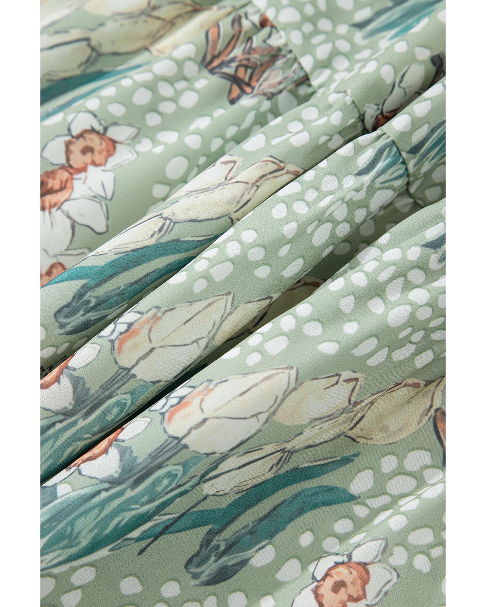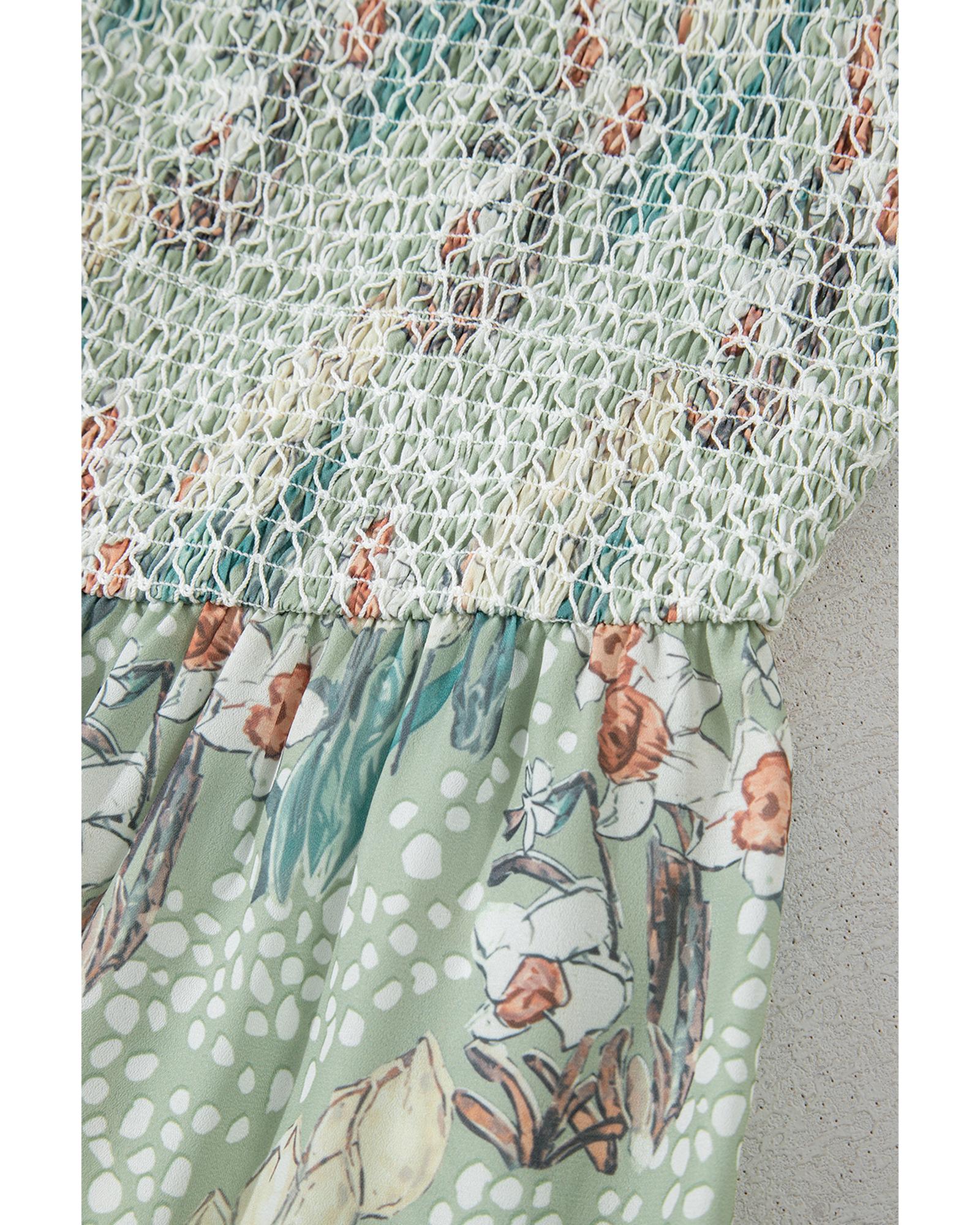 Package Content: 1 x Gray Floral Knotted Strap Smocked Tiered Ruffle Mini Dress