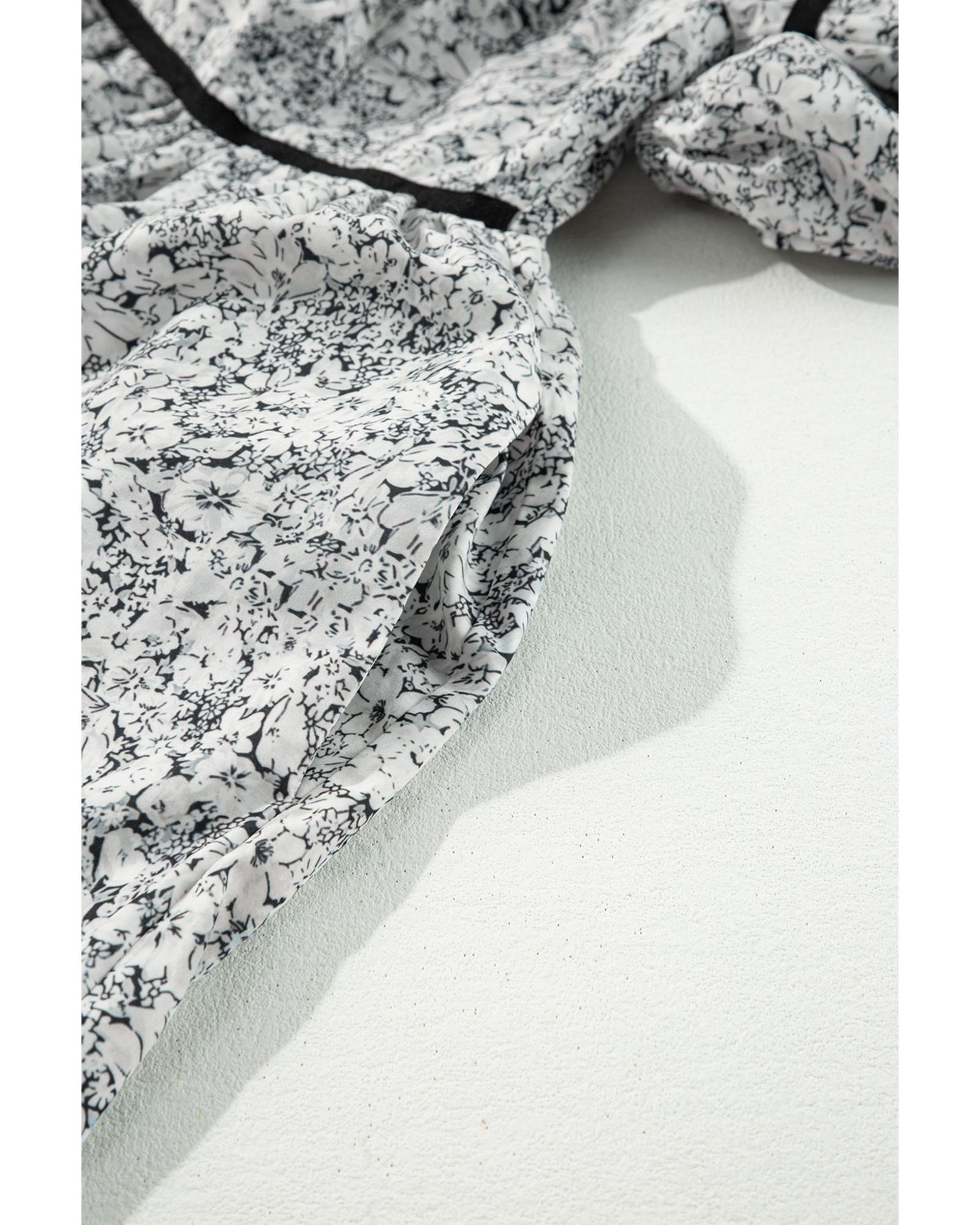 - Floral print with a gray color scheme
