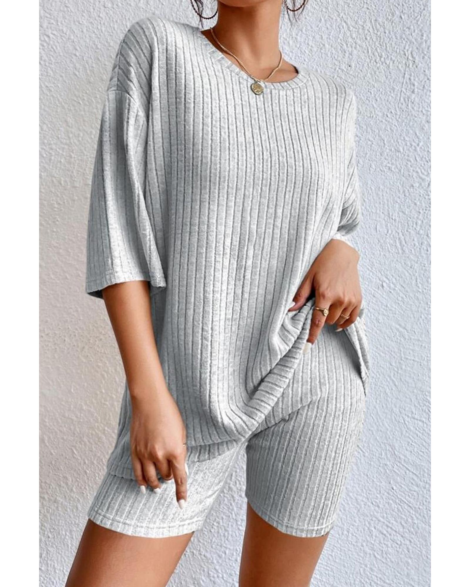 This gray plain ribbed two-piece lounge set offers a comfortable and stylish option for casual wear. Designed with a loose fit, it provides maximum comfort and flexibility, making it suitable for lounging or casual outings. The ribbed texture adds visual interest and dimension to the overall look.