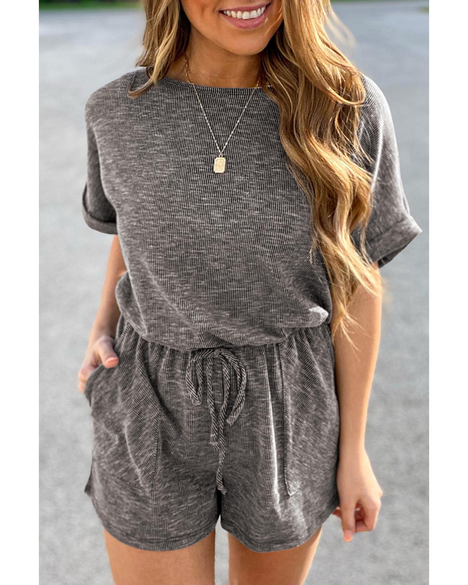 Package Content: One gray ribbed elastic waist romper