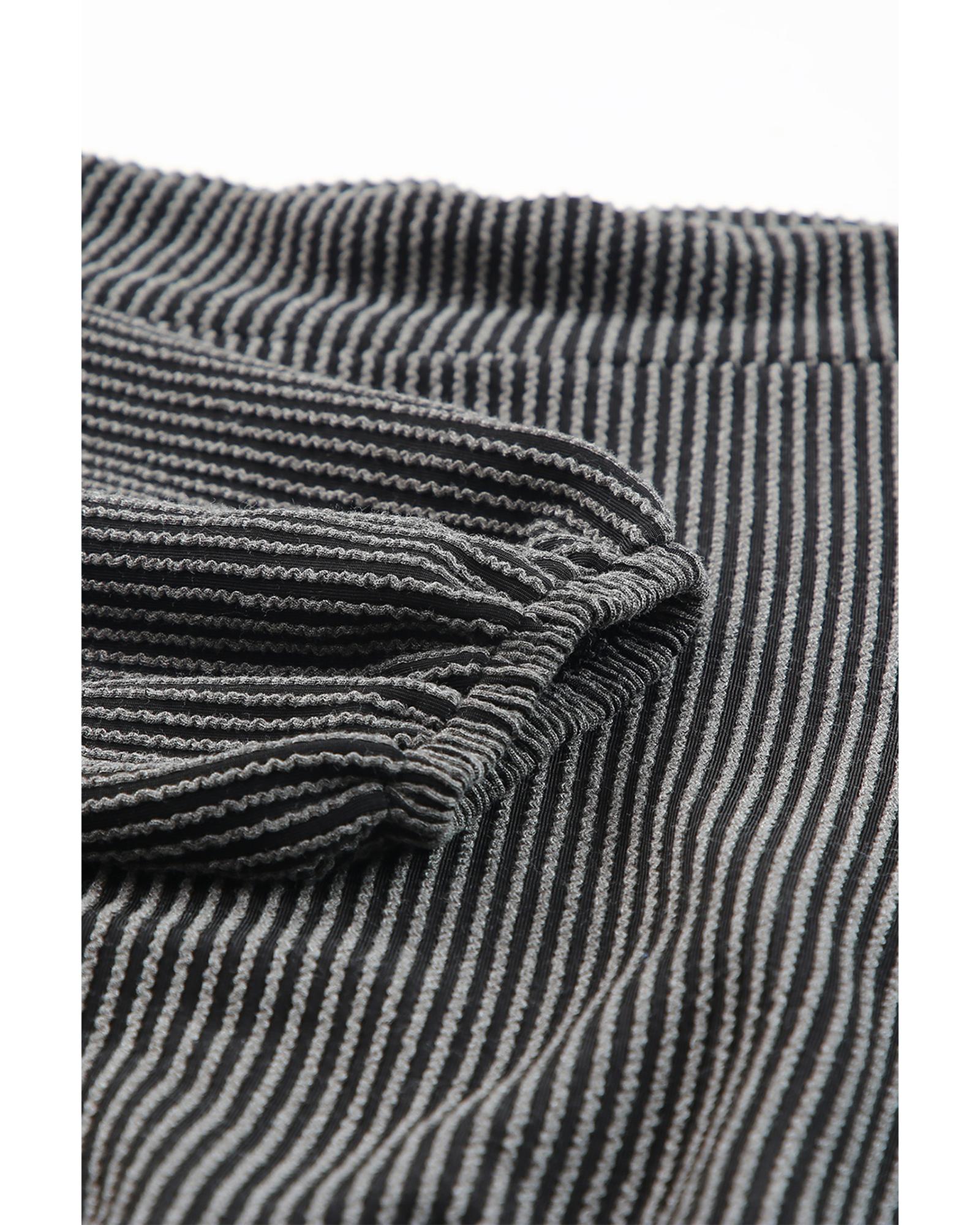 Gray Ribbed Knit Off-Shoulder Balloon Sleeve Top – L