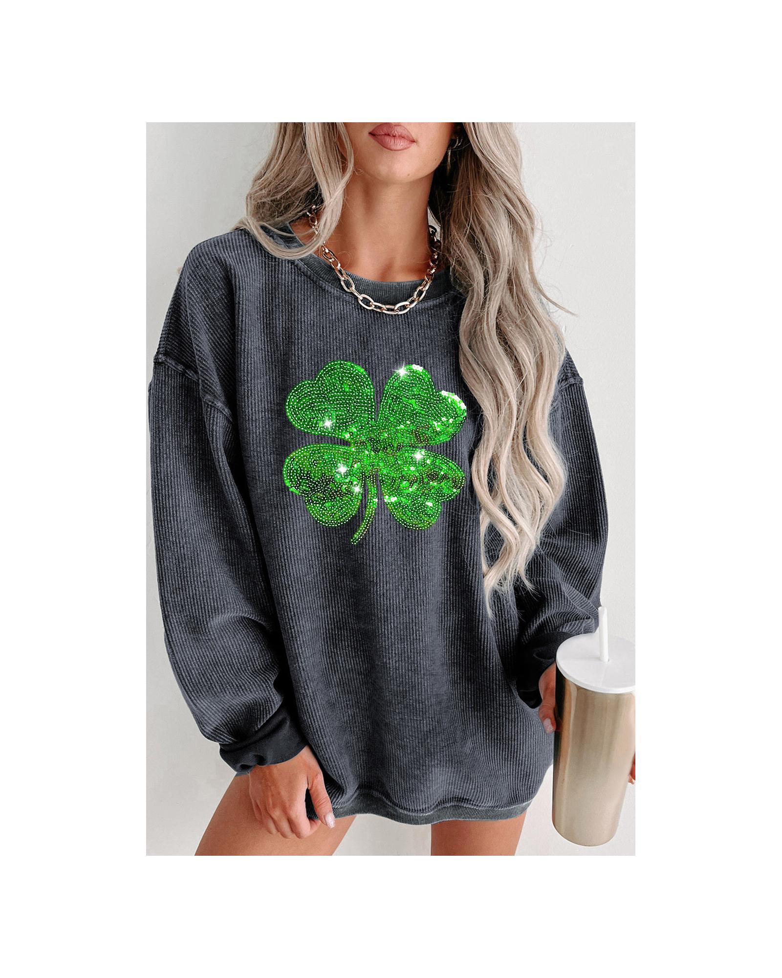 Gray Sequin St Patrick Clover Patch Corded Sweatshirt – S