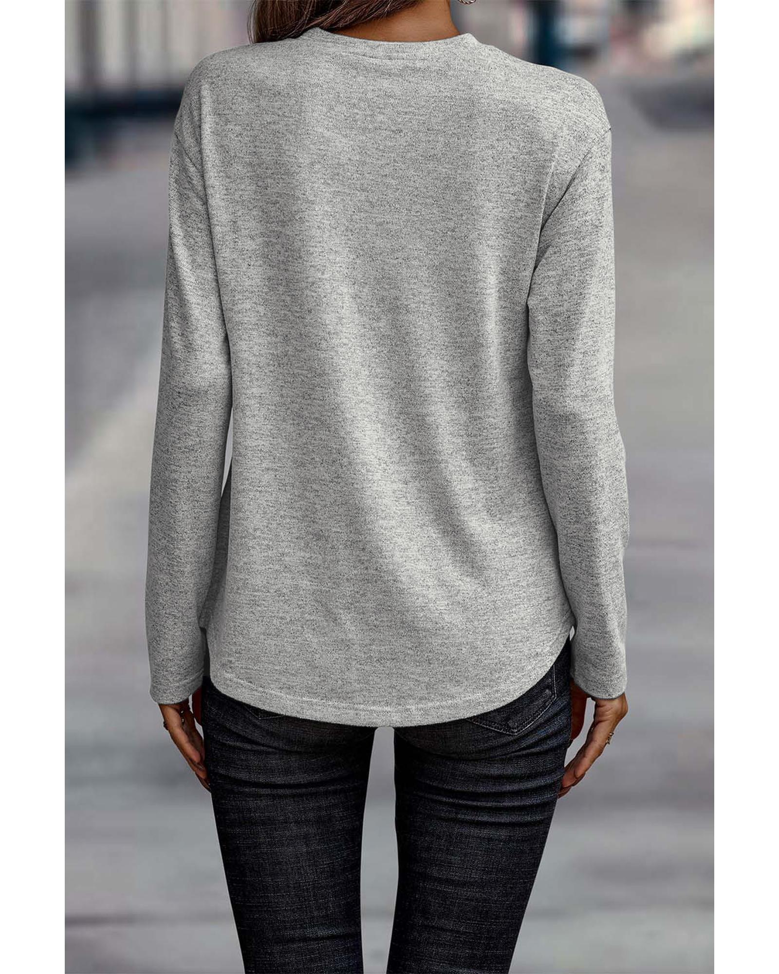 This Gray Side Buttons Crew Neck Knit Top offers a stylish and versatile addition to your wardrobe. Designed with a trendy fitted silhouette, it combines comfort and fashion for all seasons. The top features a classic crew neck, long sleeves, and side buttons, making it suitable for various occasions and easy to match with different outfits.