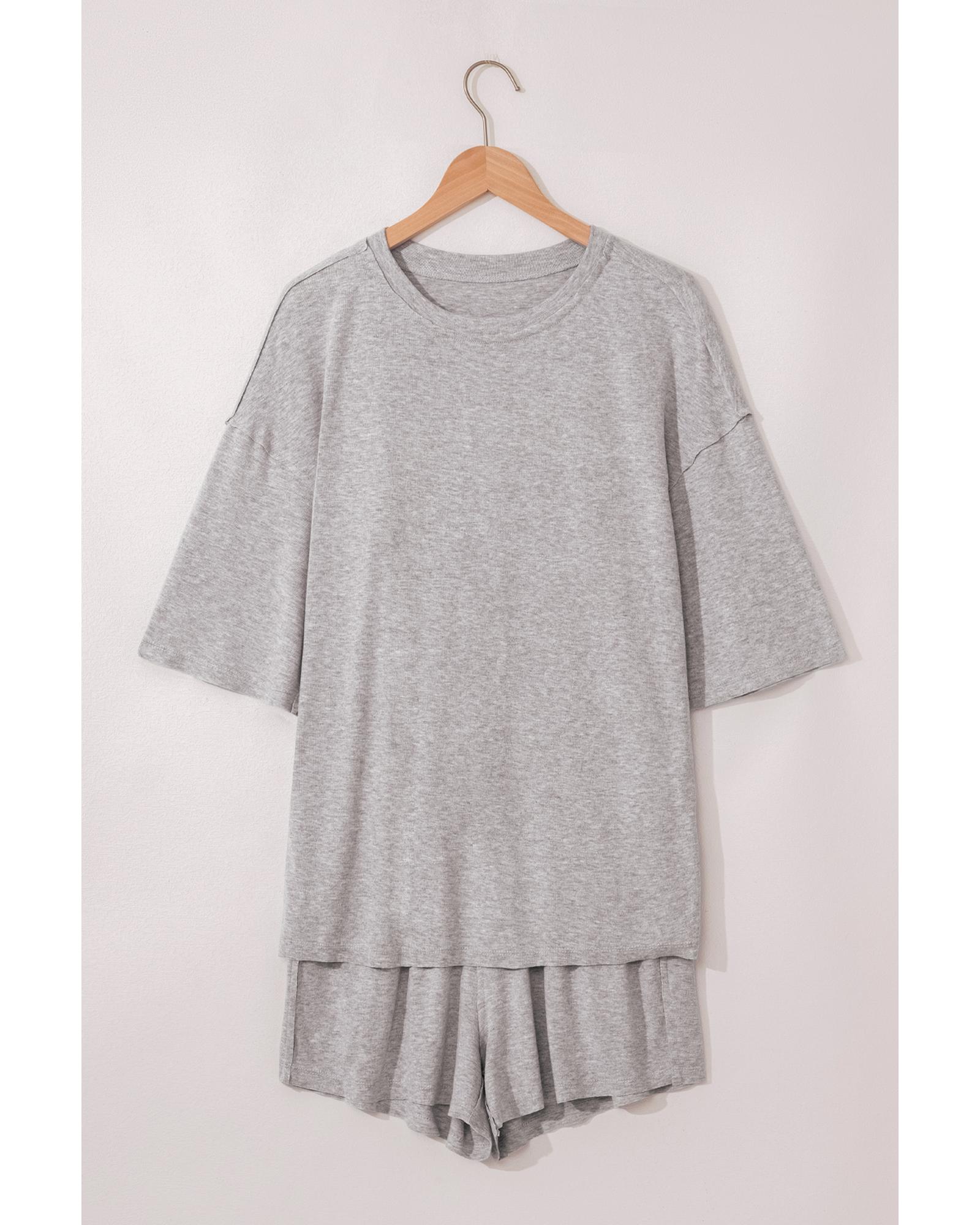 Gray Solid Color Loose Tee 2 Piece Shorts Set – L
