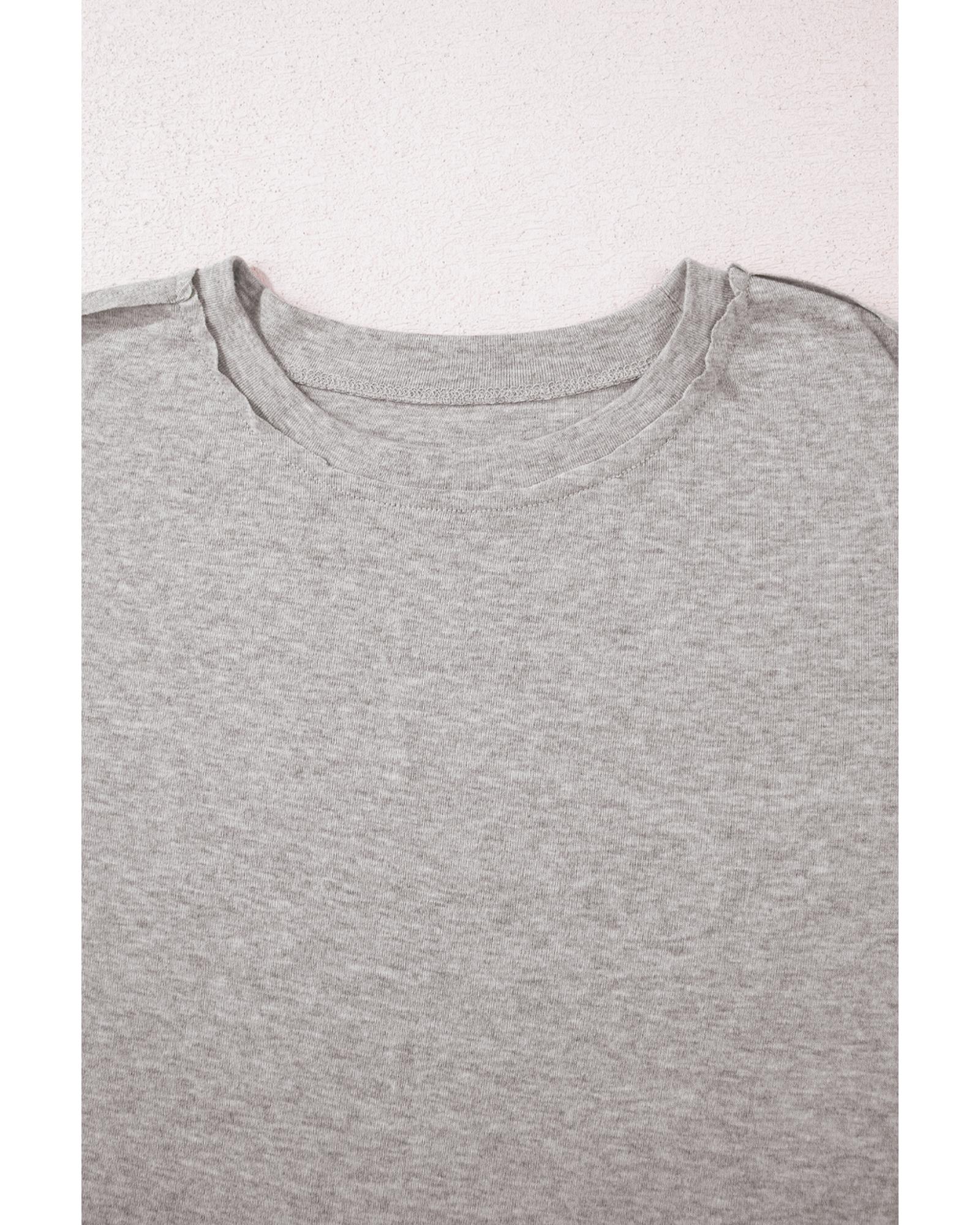 Gray Solid Color Loose Tee 2 Piece Shorts Set – M