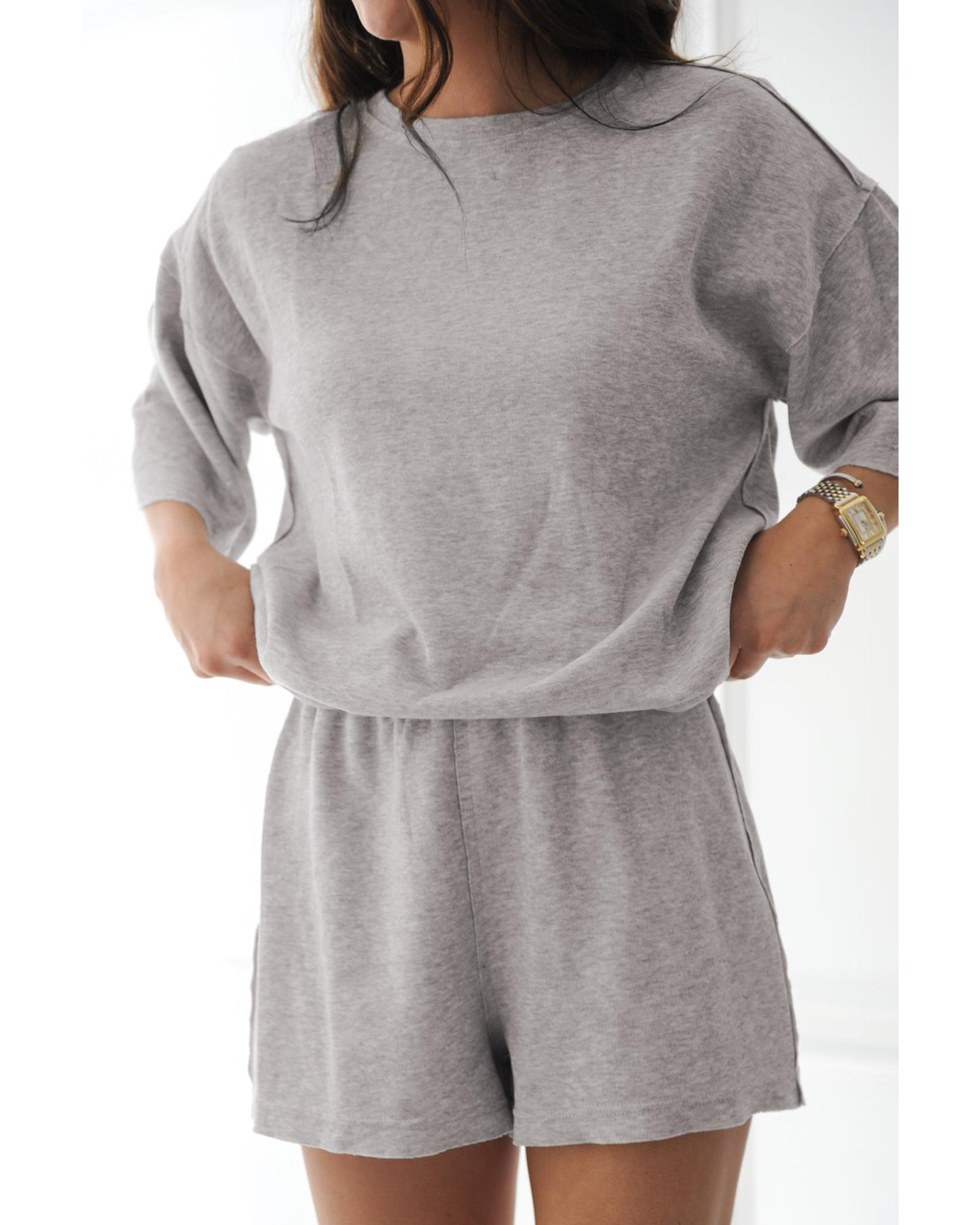 Gray Solid Color Loose Tee 2 Piece Shorts Set – S