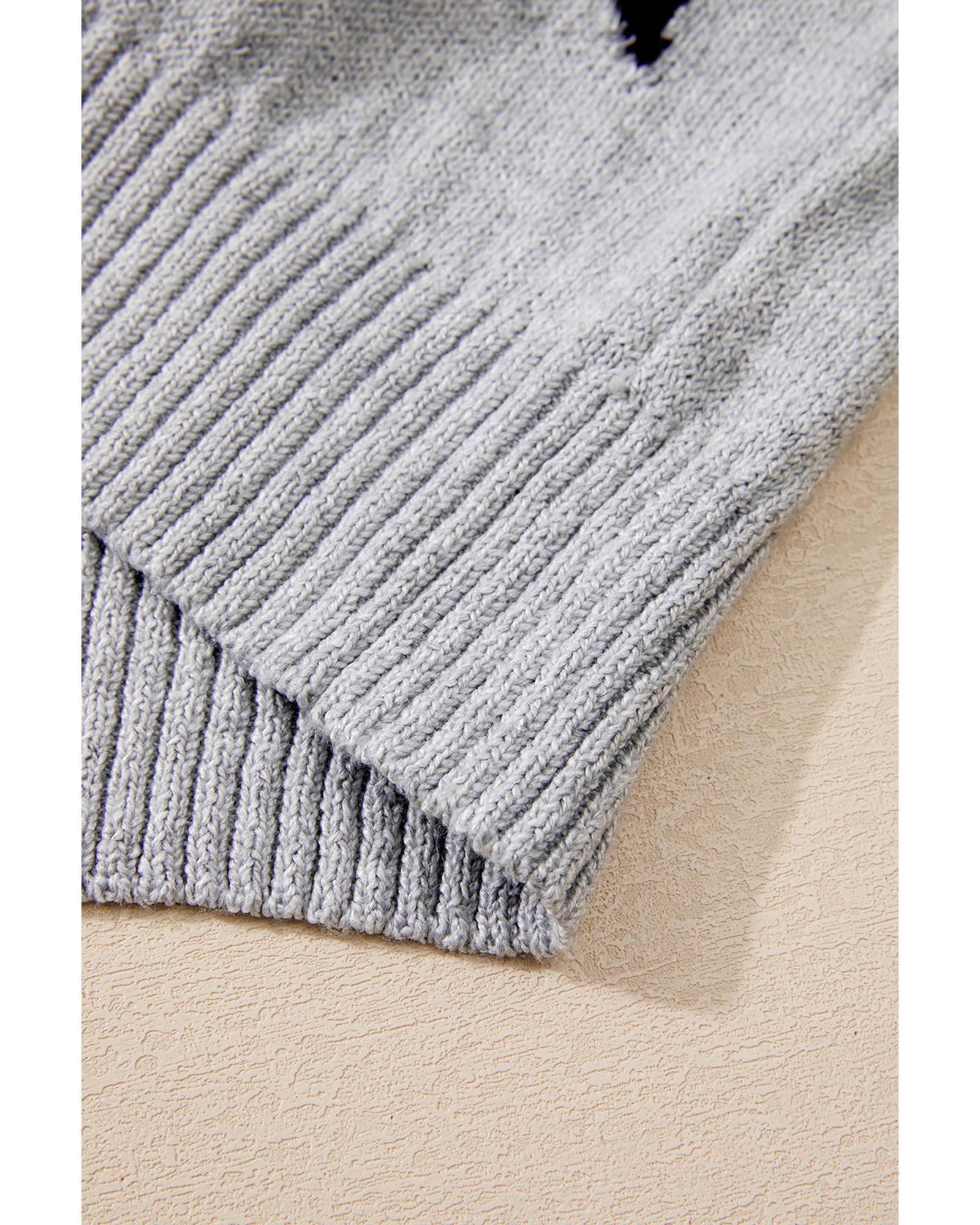 This drop shoulder sweater features a stylish gray star pattern and offers a casual, relaxed fit. Designed with a trendy fitted look, it provides high elasticity for comfortable wear and pairs easily with various outfits, making it a versatile addition to your wardrobe.