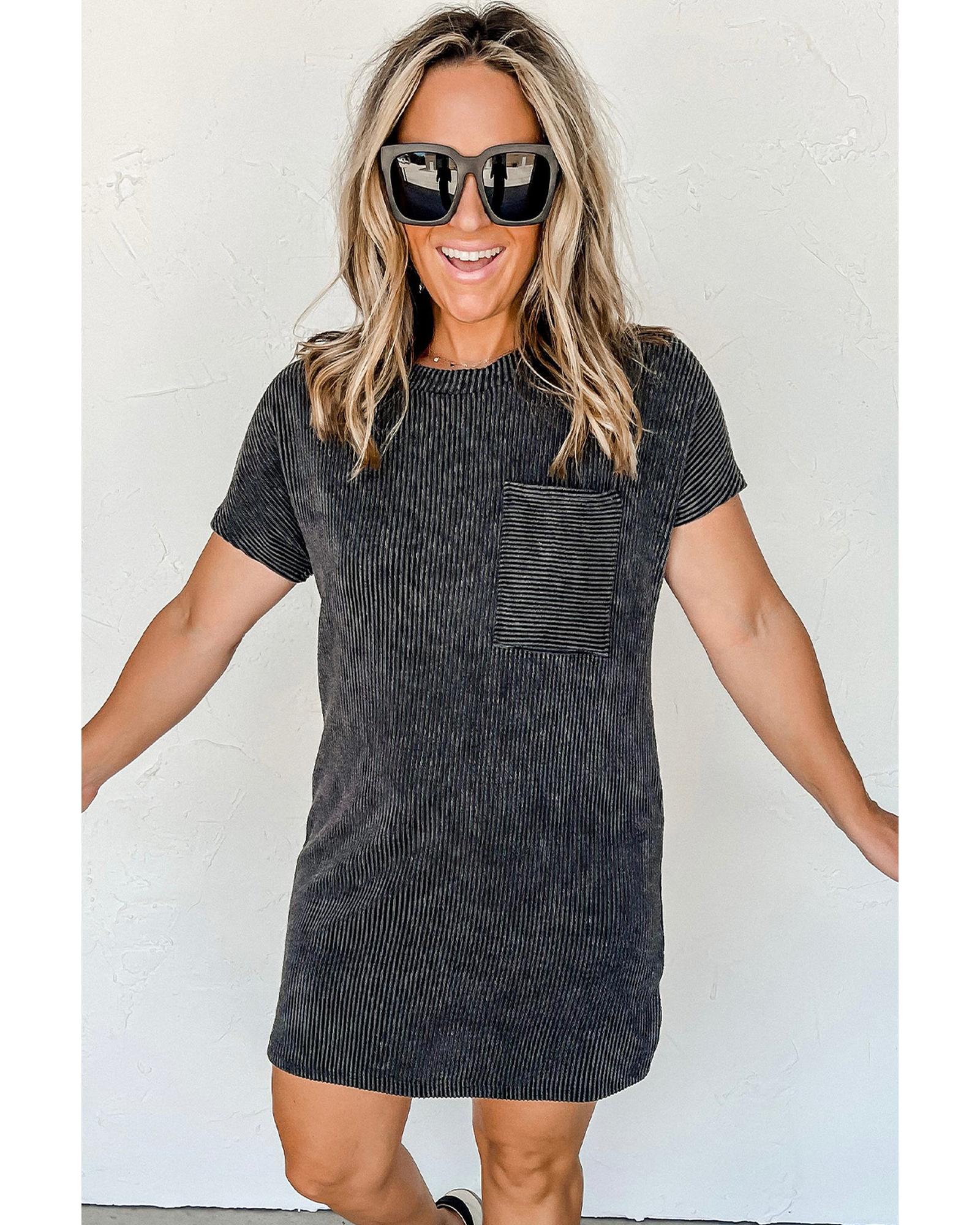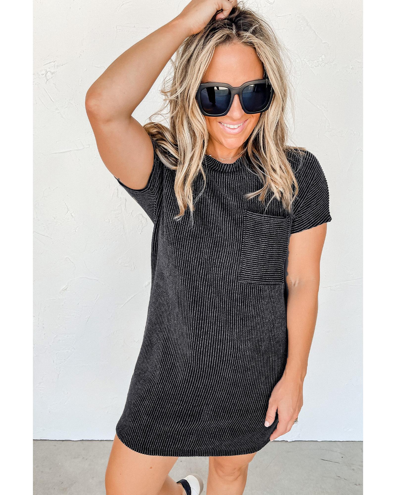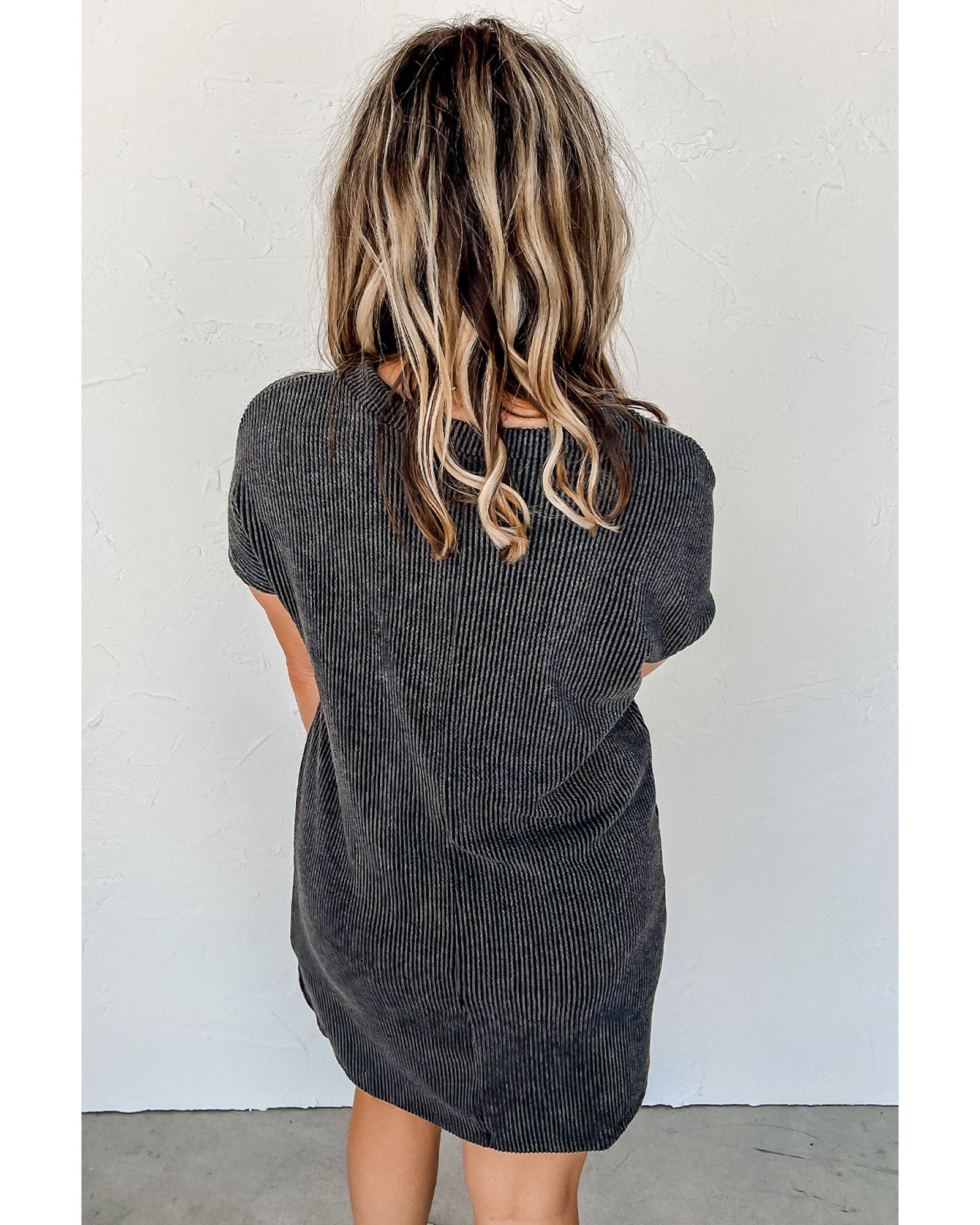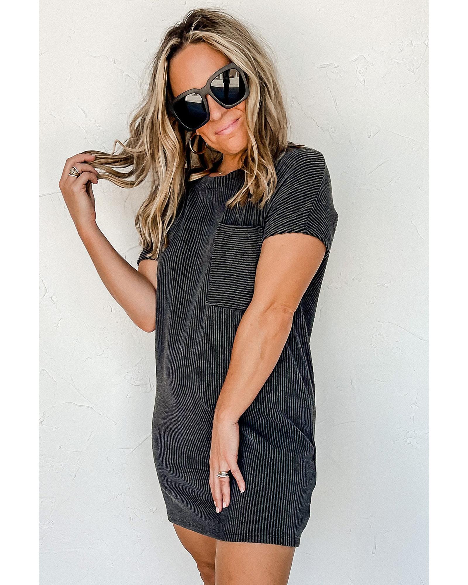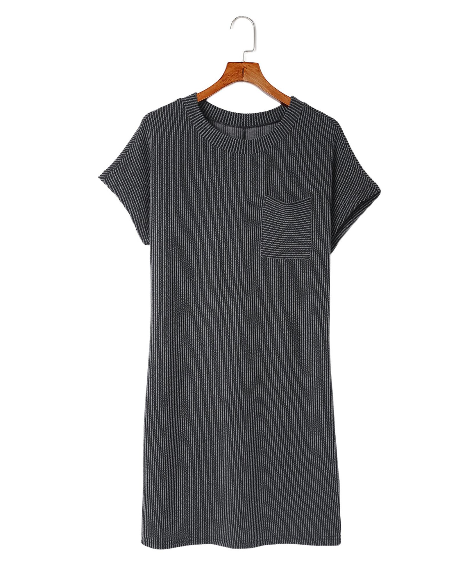 - Package Content: 1 Gray Striped Ribbed Knit T-shirt Shift Dress
