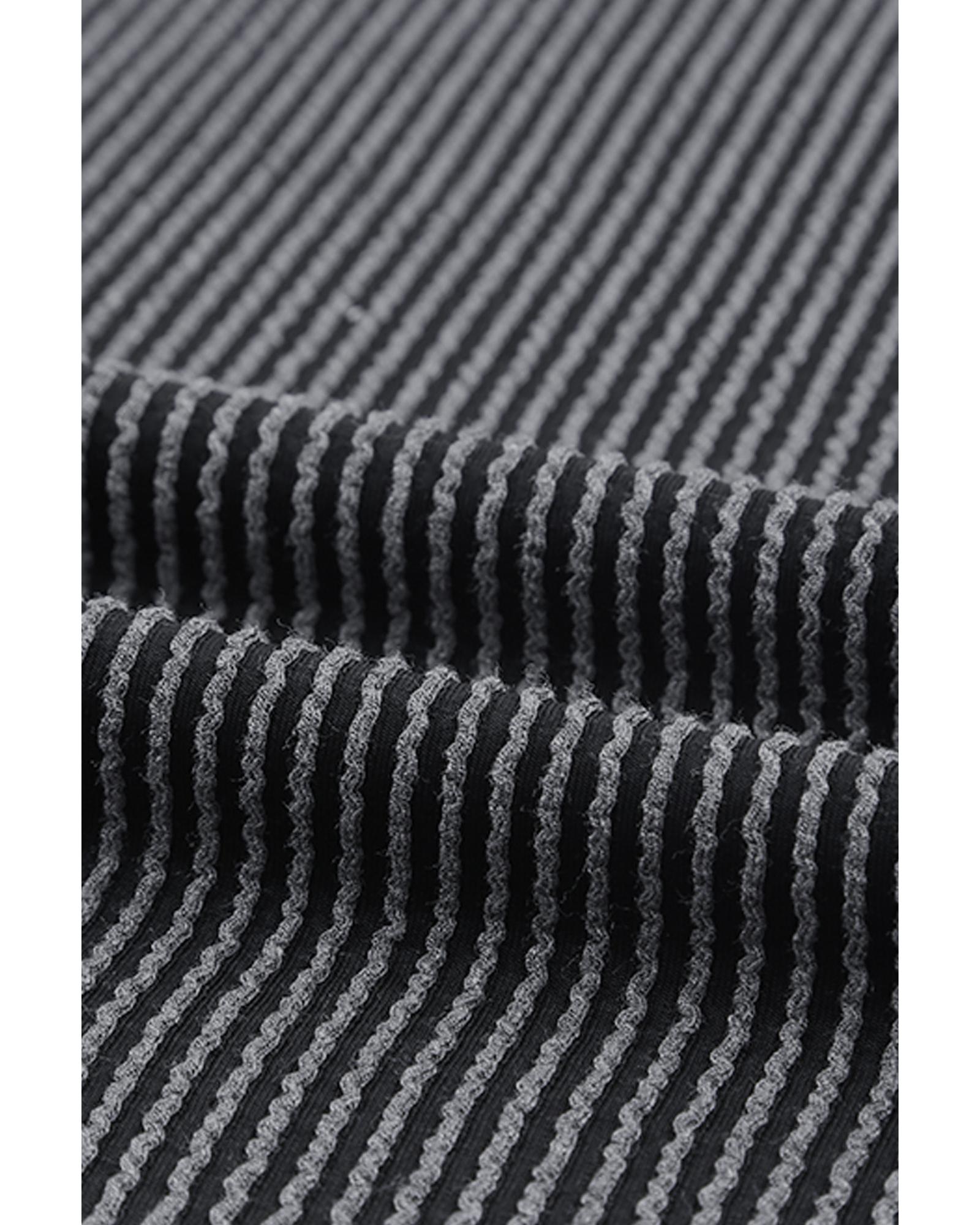 This Gray Striped Ribbed Knit T-shirt Shift Dress offers a trendy and comfortable style suitable for various occasions. Designed with a relaxed fit, it provides both fashion and ease of movement, making it a versatile addition to your wardrobe.