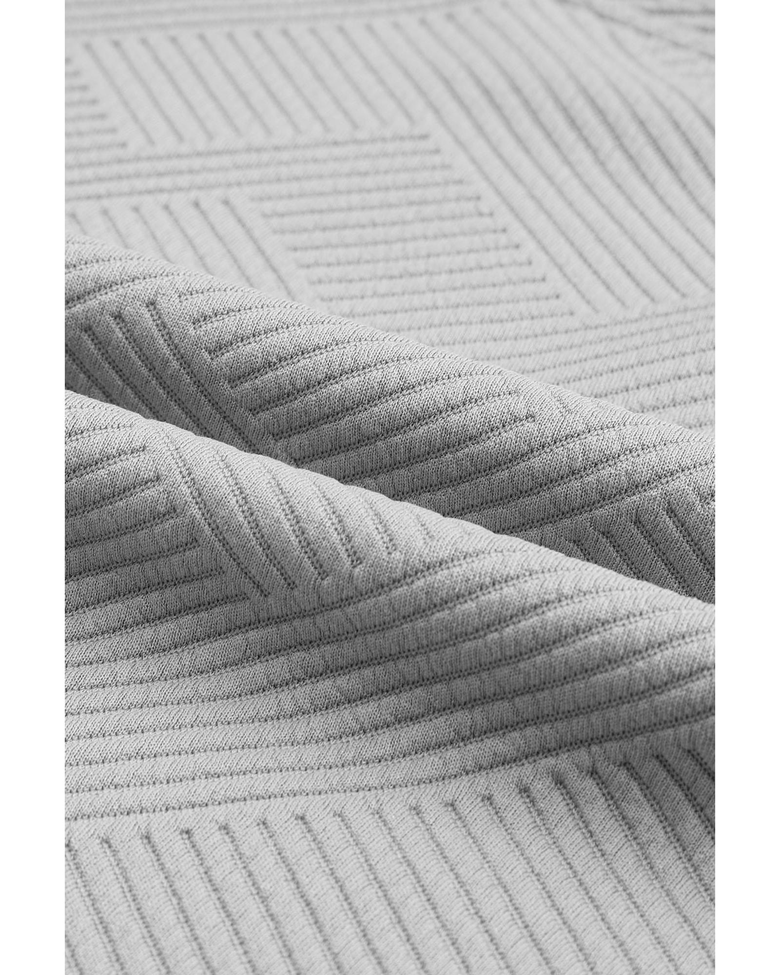 Gray Textured Long Sleeve Top and Drawstring Shorts Set – M