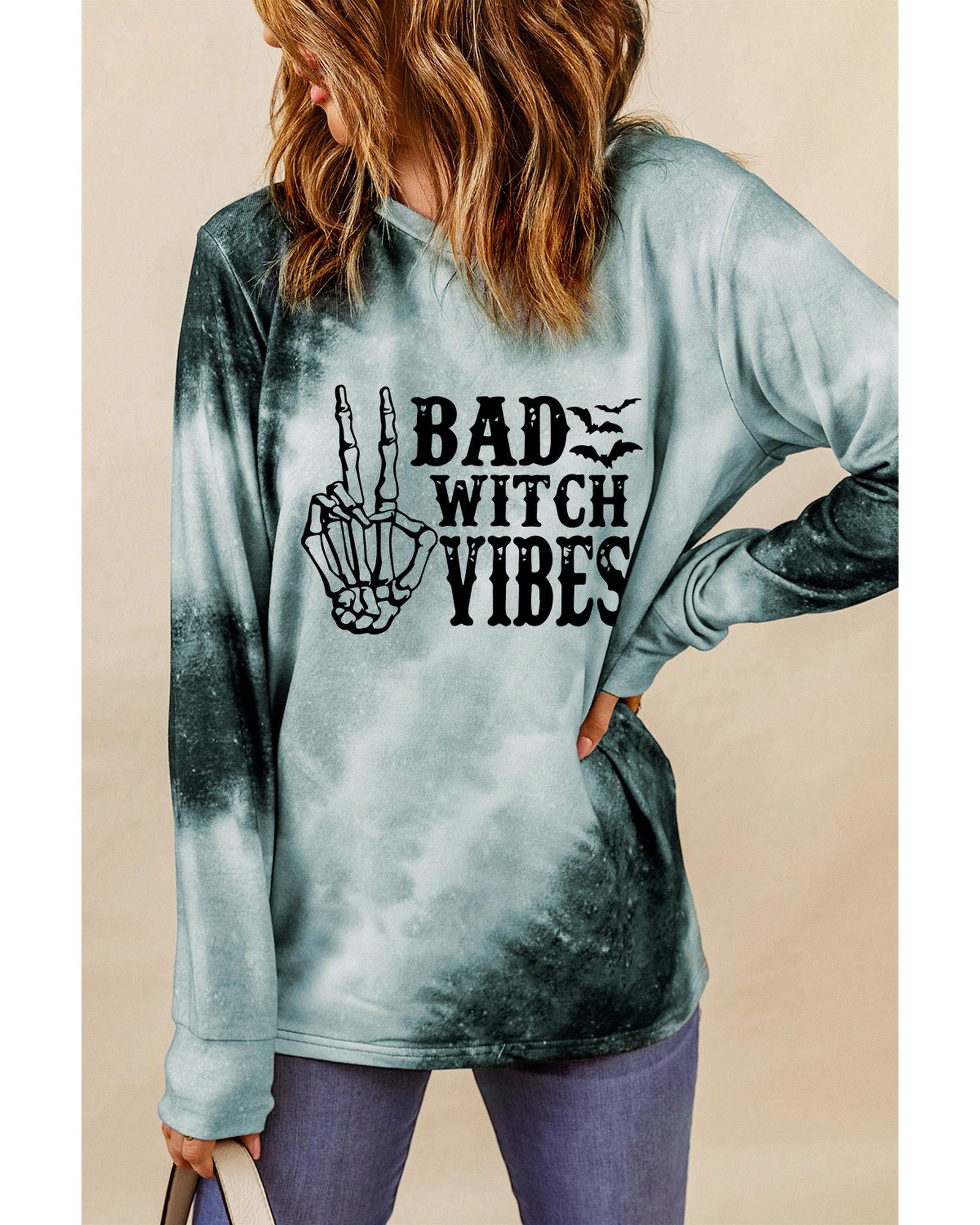 Gray Tie Dye BAD WITCH VIBES Graphic Long Sleeve Top – L