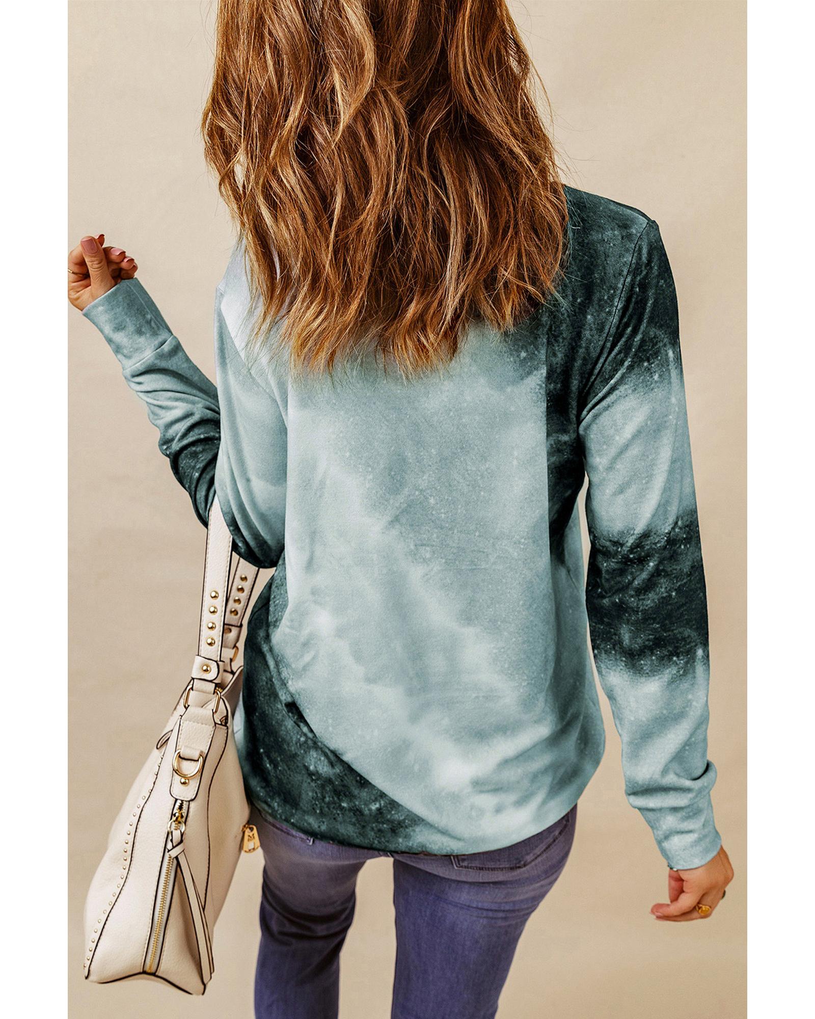 This long sleeve top features a trendy fitted design with a bold gray tie-dye pattern and graphic Halloween-themed motifs. It offers a stylish and comfortable option for casual wear, suitable for dressing up or down with jeans or pants.